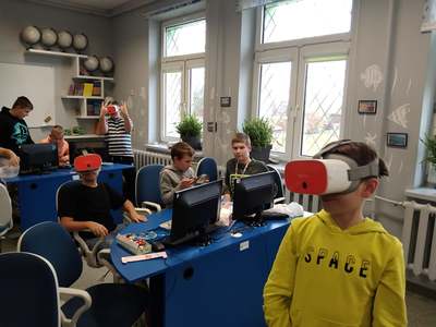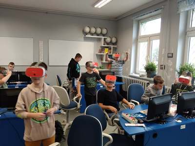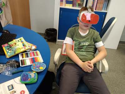 Uczniowie klasy V zostali zapoznani z systemem CLASSVR przy okazji budowy komórek. Kolejne zajęcia z wykorzystaniem zestawu pozwolą uczniom przenieść się do wirtualnej przestrzeni i zapoznać się z budową komórki w trójwymiarowym wymiarze.