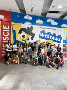 We wtorek, 28 maja, uczniowie klas II i IV wyruszyli na długo wyczekiwaną wycieczkę do Wrocławia, gdzie czekała na nich niezwykła wystawa klocków LEGO. Już na wejściu przywitały ich ogromne konstrukcje z klocków LEGO, które wzbudziły zachwyt zarówno u młodszych, jak i starszych dzieci. Na wystawie można było podziwiać imponujące modele: wielkie miasta, zamki, postacie z bajek i filmów oraz różnorodne pojazdy. Uczniowie z ciekawością zwiedzali poszczególne sekcje wystawy, odkrywając tajemnice budowania z klocków. W trakcie zwiedzania mieli okazję wziąć udział w warsztatach, gdzie pod okiem instruktorów uczyli się tworzyć własne modele. Każdy z nich mógł poczuć się jak prawdziwy konstruktor, budując swoje wymarzone konstrukcje. Ta wycieczka z pewnością pozostanie w pamięci uczniów na długo, inspirując ich do dalszych zabaw i twórczych działań z klockami LEGO.