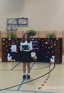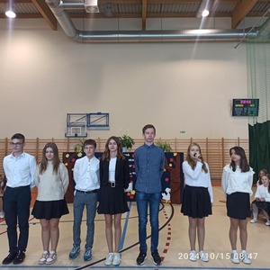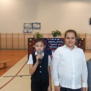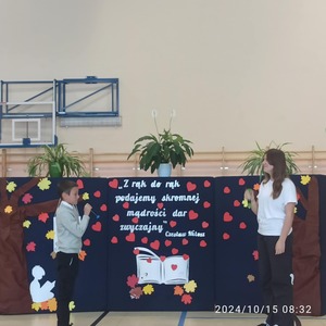 Dzień Edukacji Narodowej jest okazją do wyrażenia wdzięczności za wysiłek i wielkie serce wkładane na rzecz pracy z dziećmi. W tym dniu pamiętamy o wszystkich nauczycielach i pracownikach szkoły. Właśnie z tej okazji cała społeczność szkolna wraz z przedstawicielami Rady Rodziców spotkała się na uroczystej akademii. Przygotowali ją uczniowie pod opieką pani Joanny Klimczak i pana Tadeusza Goleczko, dekoracje przygotowała pani Agata Młodawska. Dzieci pięknymi wierszami wyraziły swoje podziękowania za serce, za uśmiech i codzienny dar wiedzy. Uczniowie koła teatralnego z klasy 5, którego opiekunem jest pani Jolanta Tomaszewska - Kijańska w zabawny sposób przedstawiły obraz współczesnych nauczycieli w mini przedstawieniu „Tani Armani”. Oprócz wierszy, można było posłuchać pięknie brzmiącej wiolonczeli, na której uczennica klasy 4 Kornelia Klimczak z akompaniamentem pana Tadeusza Goleczko zaprezentowała utwór „Concertino” . Nie zabrakło też układów tanecznych w wykonaniu naszych uczniów, przesympatyczny Aleksander Józwiak uczeń klasy 1 nacieszył nasze oczy przygotowanym samodzielnie tańcem, a klasa 5 zaprezentowała taniec do utworu „Choco, choco”. Całość akademii podsumowały pięknie wykonane piosenki.