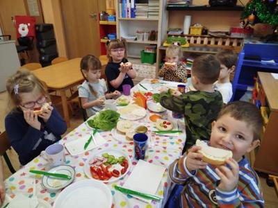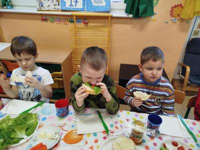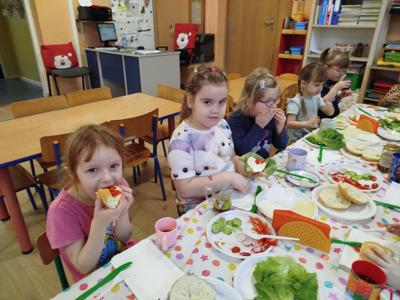 Zajęcia zakończyły się degustacją kanapkowych dzieł, a każdy mały kucharz z dumą zjadał swoje kolorowe śniadanie! 🍅🥒🌱