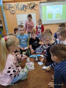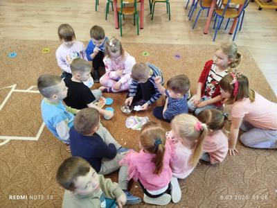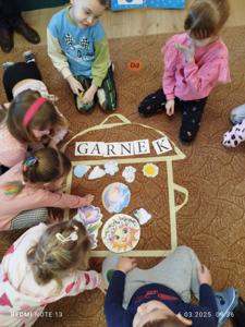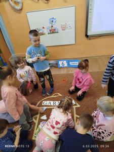 Tematem minionego tygodnia była marcowa pogoda. Dzieci poznały przysłowie „W marcu jak w garncu” i dowiedziały się, co ono oznacza. Przedszkolaki przypomniały sobie nazwy występujących w okresie przedwiośnia zjawisk atmosferycznych tj. deszcz, wiatr, słońce, śnieg, chmury, utrwalały oznaczające je symbole graficzne, które posłużyły nam również do ugotowania „marcowej zupy pogodowej”. Dzieci chętnie uczestniczyły w pogodowych zabawach muzyczno-ruchowych, a na koniec wykonały pracę plastyczną „marcowy garnek".