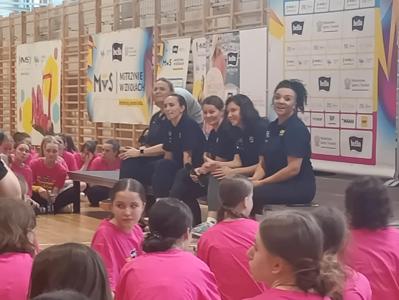 Uczennice klasy 7 i 8 naszej szkoły miały okazję uczestniczyć w autorskim projekcie Otylii Jędrzejczak "Mistrzynie w szkołach". Dziewczyny wzięły udział w lekcji wychowania fizycznego, którą poprowadziła Katrin Kargbo. Ponadto mogły zadawać pytania mistrzyniom polskiego sportu, które w tym dniu poprowadziły dla nastolatek świetny trening mentalny promując aktywny tryb życia. Specjalistki podkreśliły świadomość tego, jak ważne dla nastolatek jest aktywne uczestnictwo w lekcjach wychowania fizycznego. Specjalna lekcja WF sprawiła, że do uczestniczek trafił bardzo przejrzysty przekaz, że sport uczy determinacji, konsekwencji w dążeniu do celu, szacunku do samego siebie i otoczenia. Mistrzynie: Otylia Jędrzejczak, Joanna Jóźwik, Martyna Swatowska- Wenglarczyk, Weronika Nowakowska, Katrin Kargbo poprzez pryzmat swoich doświadczeń ukazały czym jest solidna dawka motywacji, samokontroli i samodoskonalenia w bardzo wielu kwestiach – aktywnego trybu życia oraz dbania o własne zdrowie, samopoczucie i żywienie.