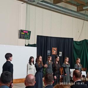 Podczas uroczystości wspólnie oddaliśmy hołd ofiarom sowieckiego ludobójstwa, w szczególności pamiętając o tych, których nazwiska i historie przekazywane są z pokolenia na pokolenie. Centralnym punktem obchodów była część artystyczna, przygotowana przez uczniów naszej szkoły, którzy poprzez poezję, wspomnienia i prezentacje multimedialne ukazali losy rodzin dotkniętych tragedią Katynia, Ostaszkowa, Starobielska i innych miejsc kaźni. Nie zabrakło także momentów zadumy – wspólna modlitwa, złożenie kwiatów pod pomnikiem pamięci oraz symboliczne zapalenie zniczy stworzyły atmosferę godną refleksji i szacunku.