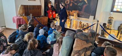 Pierwszym punktem wycieczki była Łęczyca, gdzie uczniowie odwiedzili Zamek Królewski oraz znajdujące się w jego murach Muzeum Diabła Boruty. Dzieci z ogromnym zainteresowaniem wysłuchały legendy o najsłynniejszym polskim diable oraz poznały lokalne podania i zwyczaje. Nie zabrakło także śmiechu – wiele radości sprawiły postacie diabłów zgromadzone w muzeum, a niektórzy uczniowie próbowali nawet zaprzyjaźnić się z Borutą!