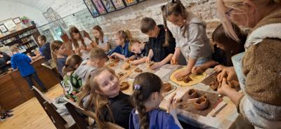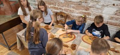 Następnie uczniowie wzięli udział w warsztatach ceramicznych, podczas których własnoręcznie lepili gliniane figurki i naczynia. Zajęcia rozwijały zdolności manualne, kreatywność i były doskonałą okazją do wyciszenia się i pracy twórczej. Powstałe dzieła dzieci zabrały ze sobą na pamiątkę.