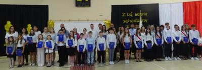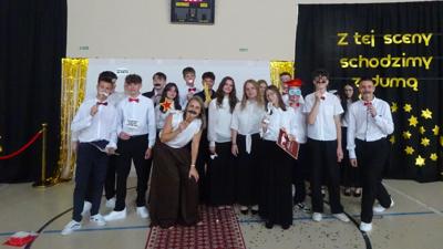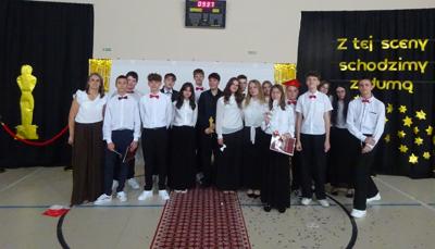 27 czerwca uczniowie klasy VIII przygotowali wyjątkowe zakończenie roku szkolnego, które odbyło się w klimacie gali oscarowej. Uroczystość rozpoczął tradycyjny polonez, który zachwycił rodziców i gości. Był czerwony dywan, eleganckie stroje i wręczenie statuetek „Oskarów” – zarówno dla uczniów, jak i nauczycieli! Każdy z wyróżnionych otrzymał statuetkę w zabawnej, spersonalizowanej kategorii, co dostarczyło wszystkim wielu emocji i uśmiechu. Gratulujemy ósmoklasistom pomysłowości i życzymy powodzenia na nowym etapie edukacji!