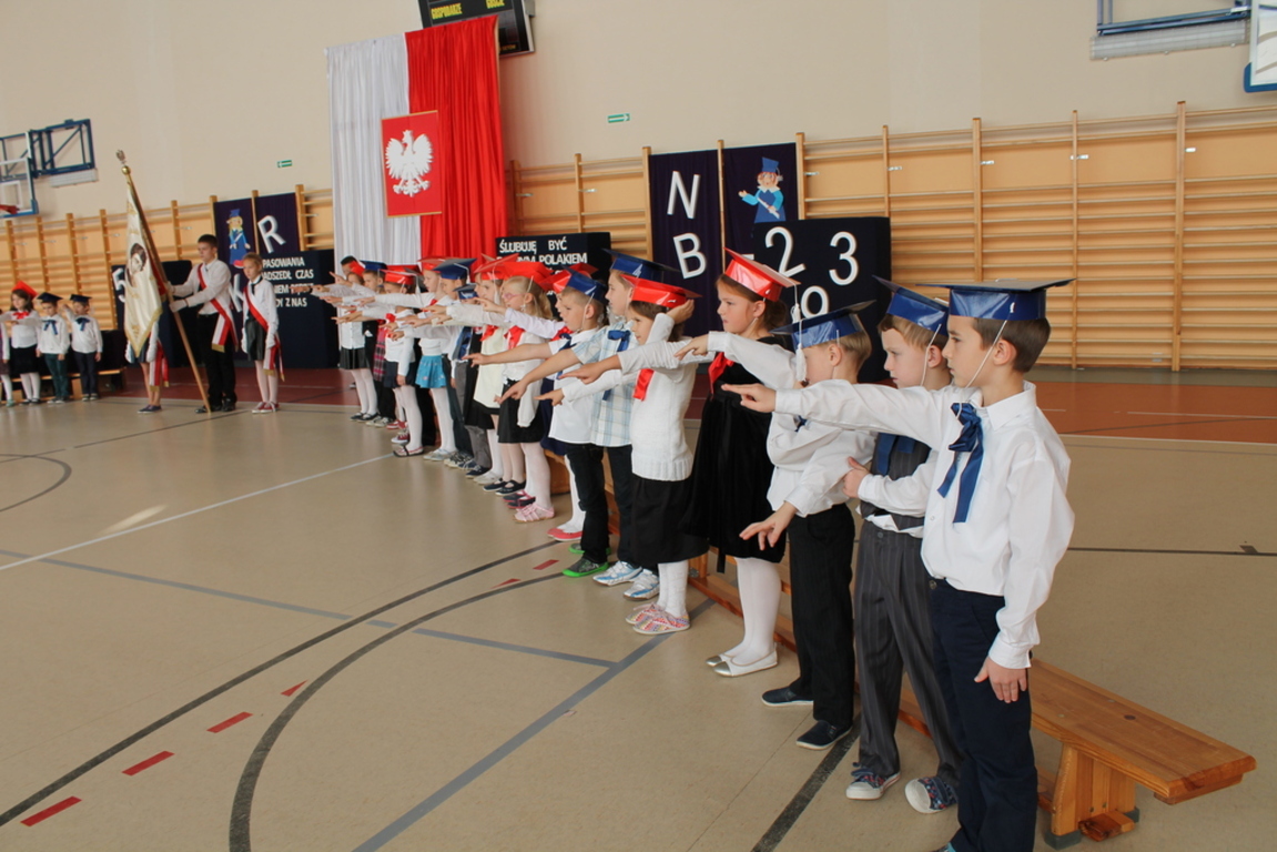 Po uroczystym ślubowaniu nastąpiło pasowanie na ucznia Szkoły Podstawowej w Wojsławicach, którego dokonała pan Dyrektor Marek Guć , dotykając wielkim ołówkiem prawego ramienia pierwszoklasistów. Na zakończenie uczniowie otrzymali pamiątkowe dyplomy i rożki obfitości, które ufundowała Rada Rodziców. Pełną emocji i wzruszeń uroczystość zakończyło wspólne zdjęcie uczniów