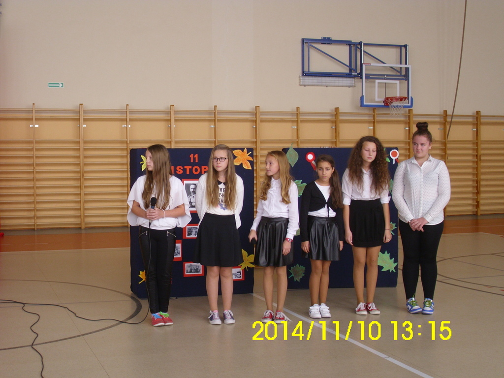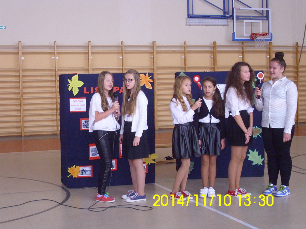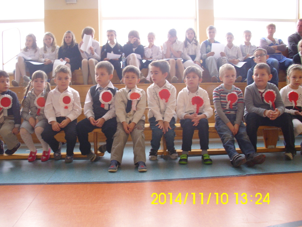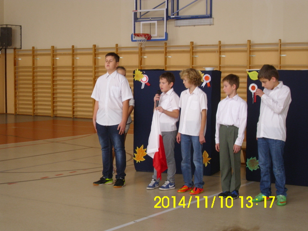 10 listopada odbył się uroczysty apel z okazji Święta Odzyskania Niepodległości przygotowany przez uczniów klasy piątej i szóstej pod kierunkiem pani Urszuli Opelt i pani Jolanty Tomaszewskiej – Kijańskiej.