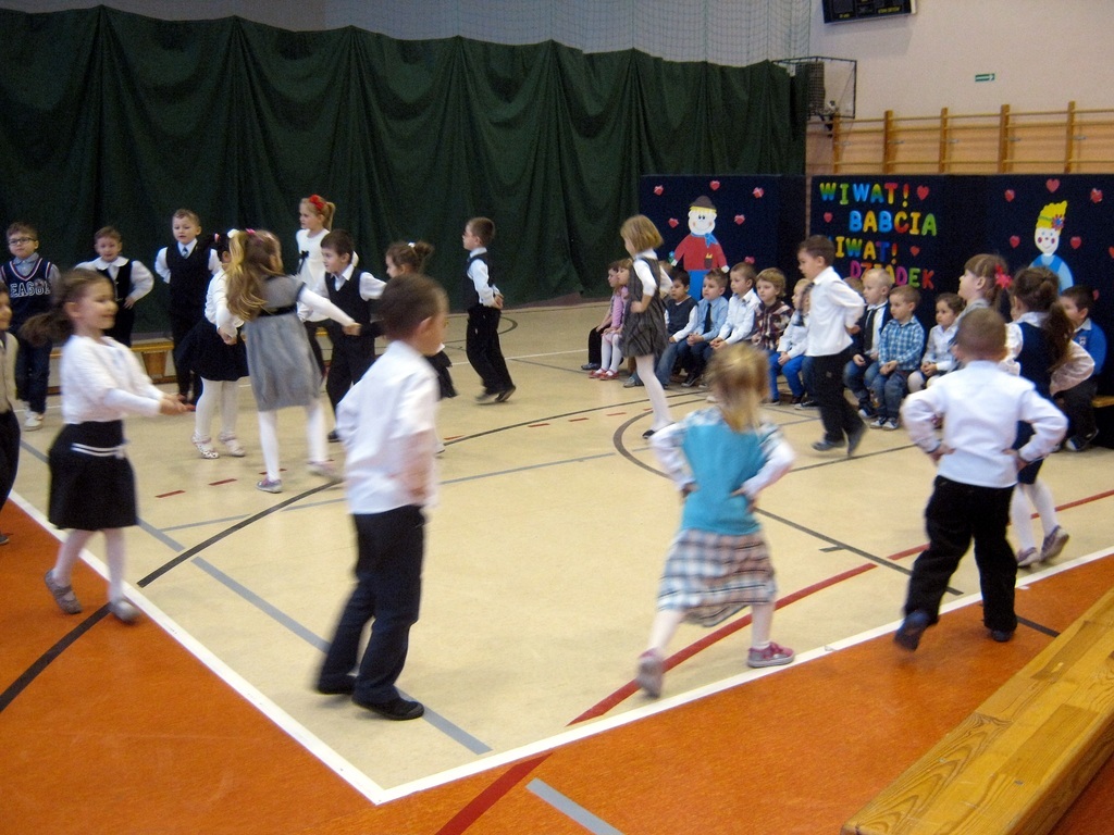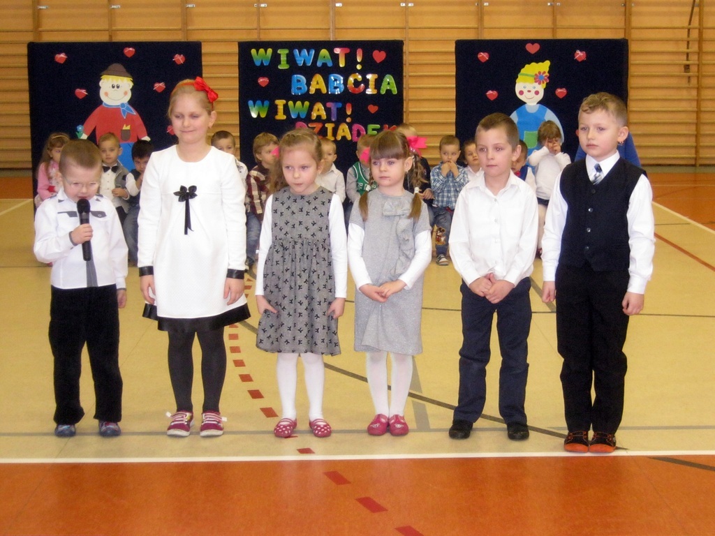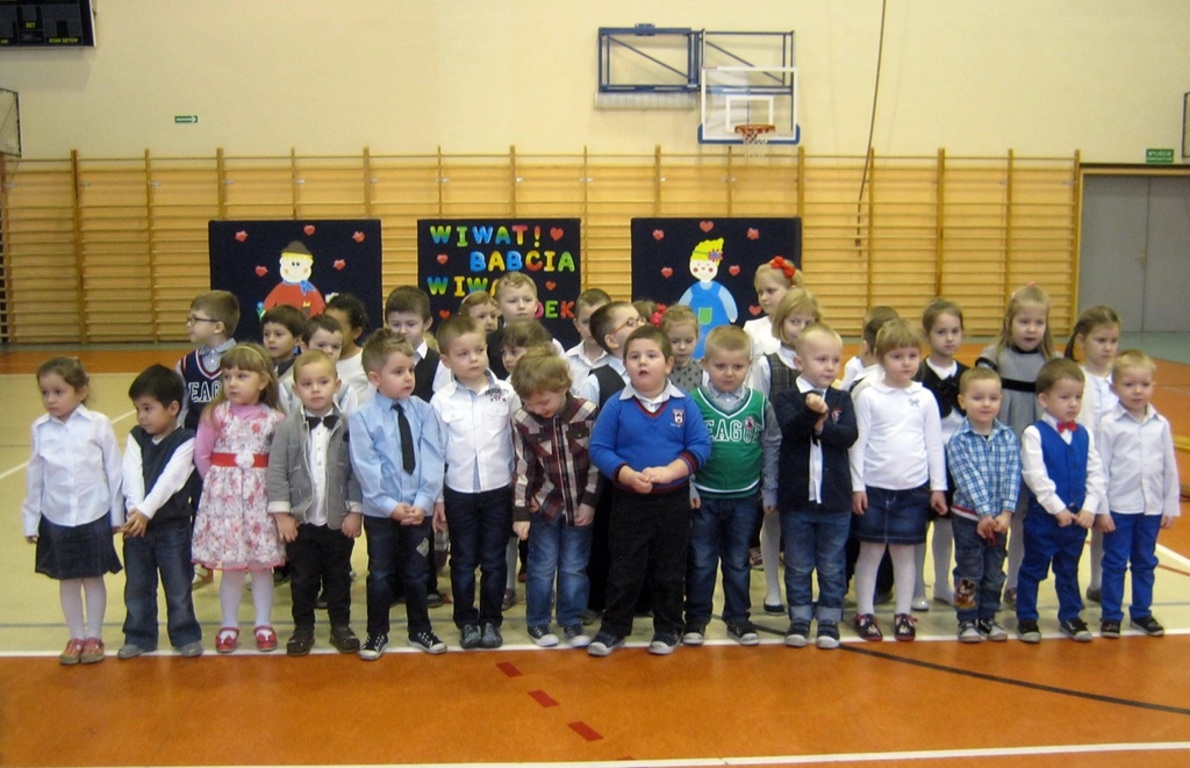 W dniu 23 stycznia dzieci z Punktu i Oddziału Przedszkolnego gościły Babcie i dziadków. Uroczystość odbyła się na Sali gimnastycznej, gdzie seniorzy obejrzeli występy swoich ukochanych wnucząt. Po piosenkach, wierszykach i tańcach w wykonaniu dzieci, przyszła kolej na zabawy z dziadkami. Wspólne harce wszystkim sprawiły wiele radości. Babcie i dziadkowie chętnie brali udział w grach i zabawach. Po wspólnych pląsach wszyscy udali się na słodki poczęstunek przygotowany przez rodziców. Na koniec uroczystości każda babcia i każdy dziadek otrzymali laurki przygotowane przez dzieci.