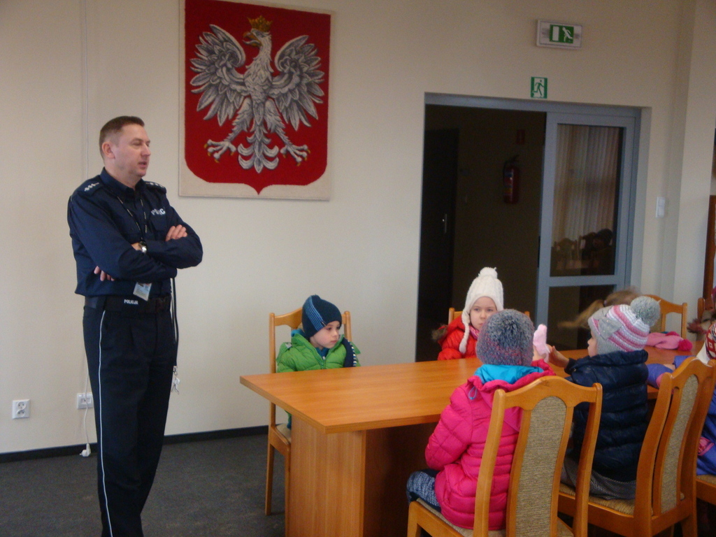 Ślicznie dziękujemy Panom Policjantom za pogadankę o pracy i roli policji oraz przypomnienie o tym jak unikać zagrożeń w domu i w otoczeniu, a także za oprowadzenie po budynki i prezenty które zapewnią nam bezpieczeństwo na drodze i zabawę w czasie pochmurnych dni.