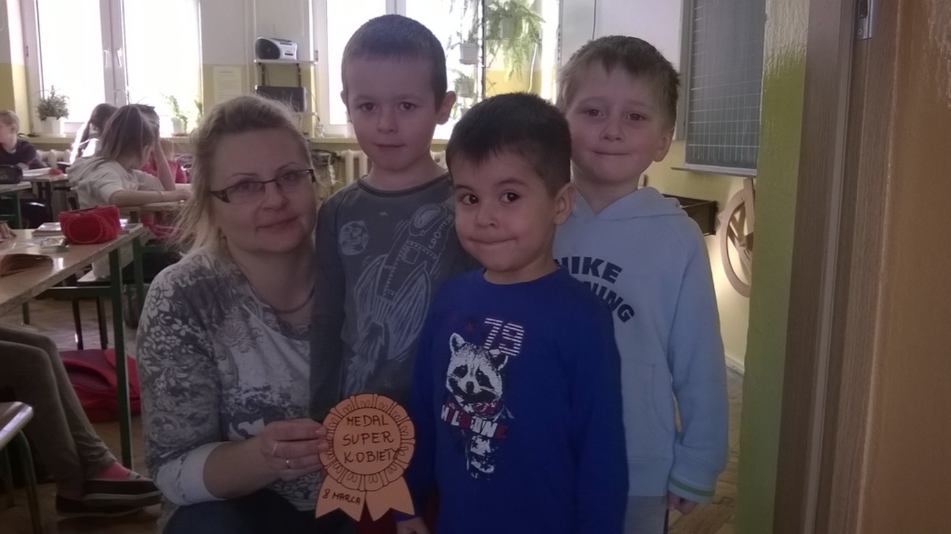 9 marca w szkole zapanował ciepły, pogodny i wesoły nastrój. Wszystko to dzięki chłopcom, którzy, jak co roku w Dniu Kobiet nie zapomnieli o koleżankach i paniach. Wszystkie otrzymały najserdeczniejsze życzenia oraz upominki. Chłopcy, jak na prawdziwych dżentelmenów przystało, byli tego dnia wyjątkowo uczynni i uprzejmi. Mali panowie z przedszkola wręczali wszystkim dziewczynkom ze szkoły medal „SUPER KOBIETY”, a paniom kwiatek z orgiami.