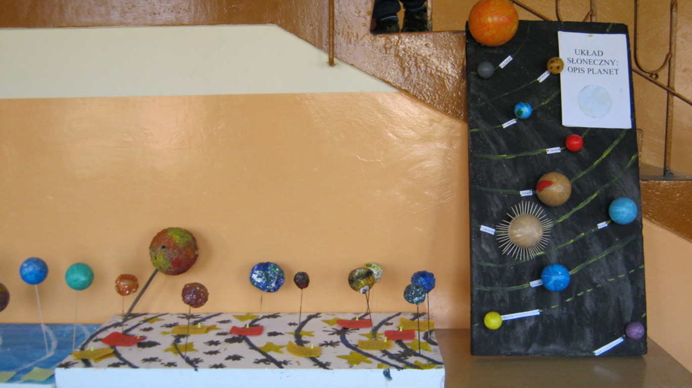Uczniowie klasy VI w czasie zajęć z przyrody realizowali projekt edukacyjny „Układ słoneczny”. Celem projektu było poznanie budowy i planet układu słonecznego a następnie samodzielne jego wykonanie. Paulina Badziak , Bartosz Dwojacki, Wiktoria Kozłowicz, Amelia Kwiatkowska, Monika Michalska, Aniela Szewczyk, Wiktor Szewczyk wykonali takie właśnie makiety. Nad całością prac czuwała pani Małgorzata Augustyniak. Prace można było zobaczyć na szkolnym korytarzu.
