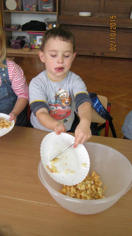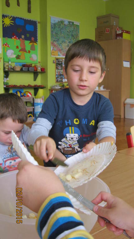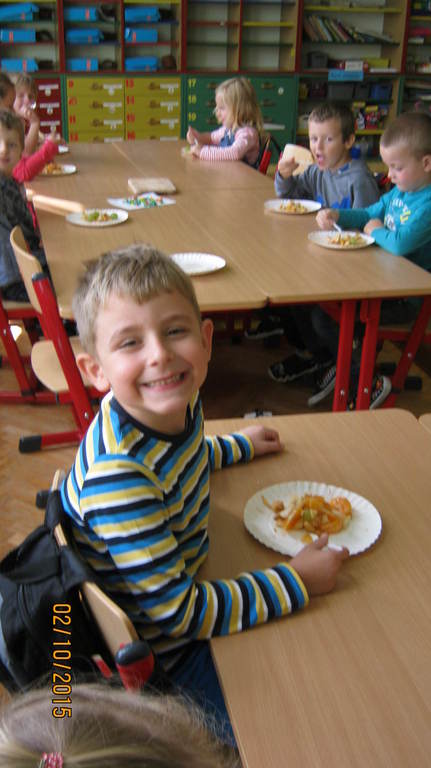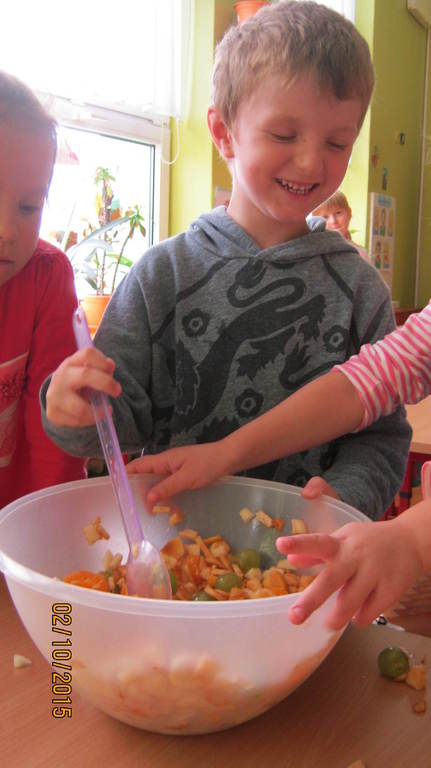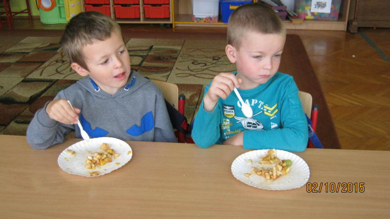 Dzieci z oddziału przedszkolnego – pięciolatki ,w ramach programów „Śniadanie daje moc” i „Pora na pomidora” przygotowały własnoręcznie sałatkę owocową. Samodzielnie wykonywały wszystkie procesy – umyły, pokroiły i wymieszały sałatkę. Na koniec nastąpiła degustacja. Mniam. Wszystkie przygotowane przez dzieciaki smakołyki zniknęły w oka mgnieniu. Już czekamy na następne zajęcia związanie z przygotowywaniem posiłków.