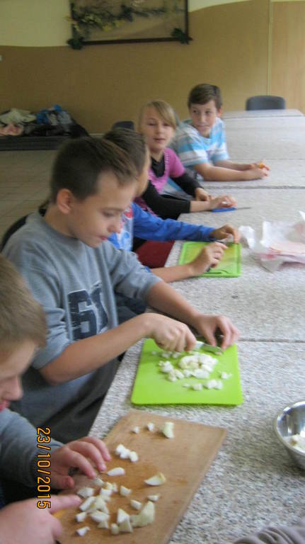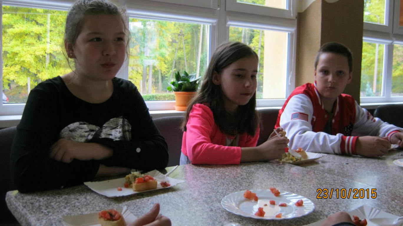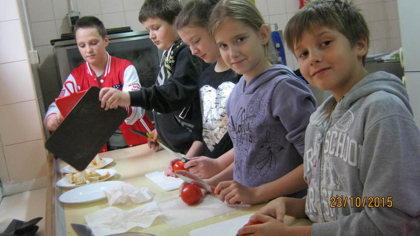 W piątek 23 października nasi uczniowie z klasy IV odwiedzili zaprzyjaźnione ZSRCKU w Wojsławicach. Tam wspólnie z uczniami klasy II Technologii Żywienia oraz ich opiekunem p. Anną Kowalczyk zmagaliśmy się z wyzwaniem kuchni włoskiej. Dzieciaki przygotowywały ostatecznie sałatkę z brokułem, pomidorami, i grzankami. Najprzyjemniejszą częścią spotkania warsztatowego okazało się wspólnie zjadanie przygotowanych posiłków. Jedzonko było pyszne i już czekamy na kolejne kulinarne spotkania. Dziękujemy pani Ewelinie Klimczak i panu Tadeuszowi Goleczko, którzy zorganizowani te warszaty :-)
