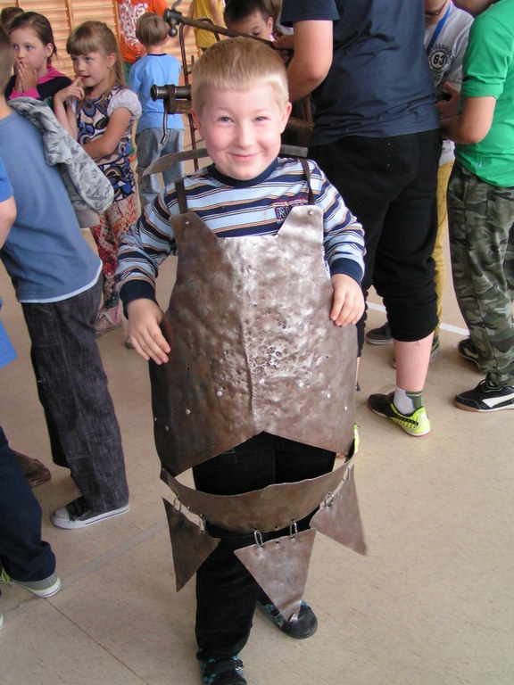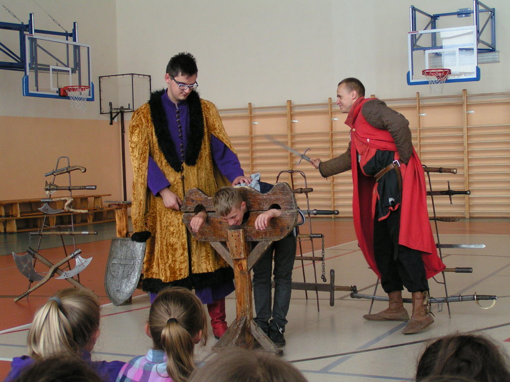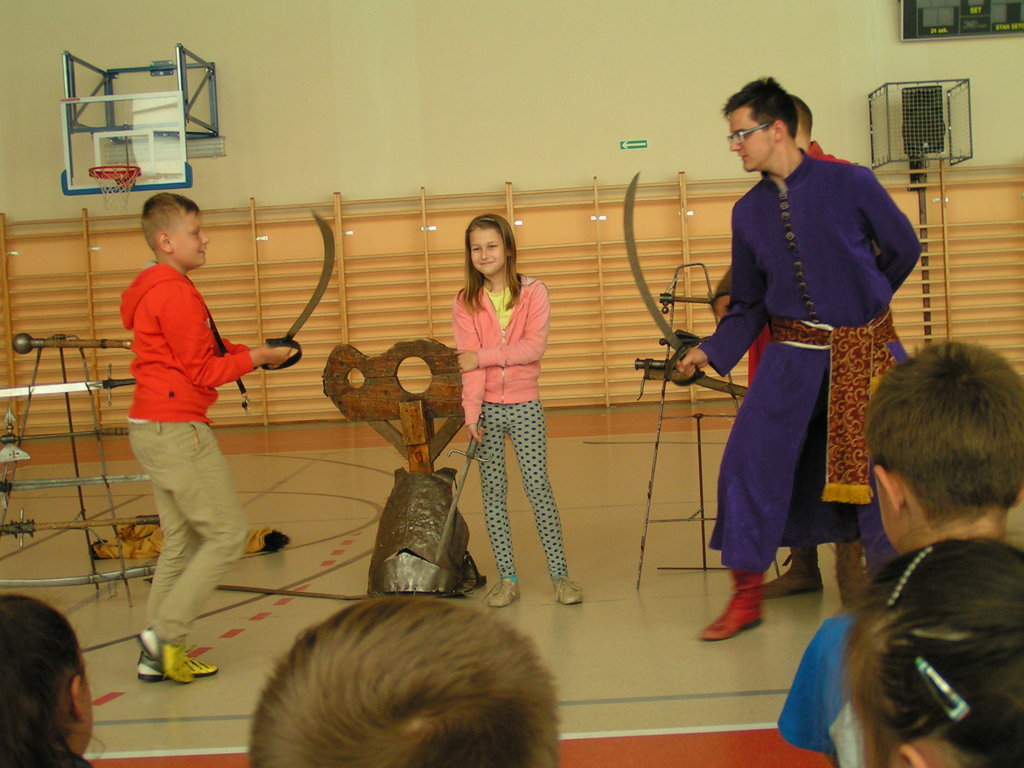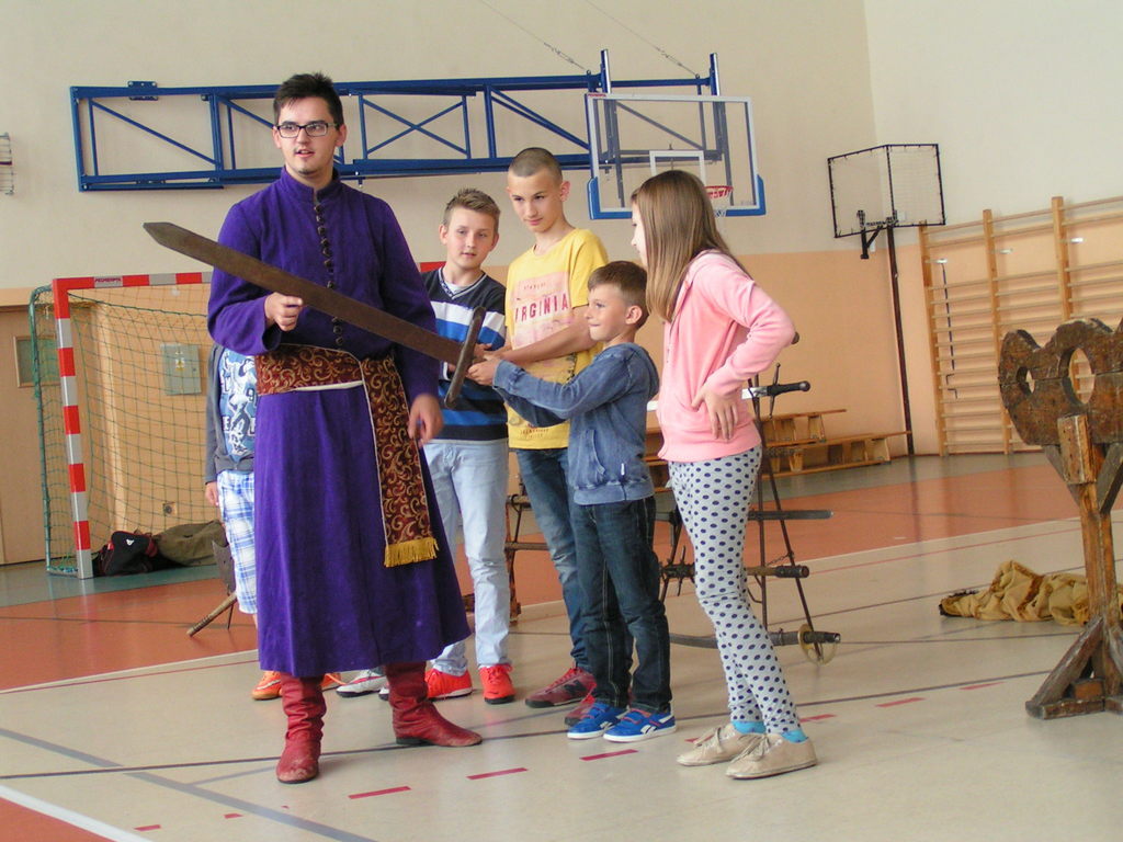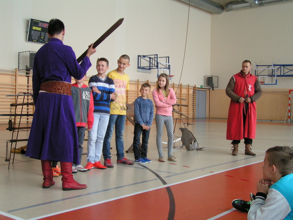 W szkole została przeprowadzona żywa lekcja historii. Naszymi gośćmi była grupa Rekonstrukto. Członkowie tej grupy opowiedzieli uczniom naszej szkoły o średniowiecznych rycerskich zwyczajach, o kodeksie rycerskim oraz przeprowadzili przykładowe pasowanie na rycerza. Dzieci mogły z bliska zobaczyć rycerski ekwipunek, uzbrojenie i przejść próbę ciężkiego miecza. Jak się okazało średniowieczne miecze wcale nie były takie lekkie jak się niektórym wydawało. Ta lekcja na pewno na długo pozostanie w naszej pamięci.