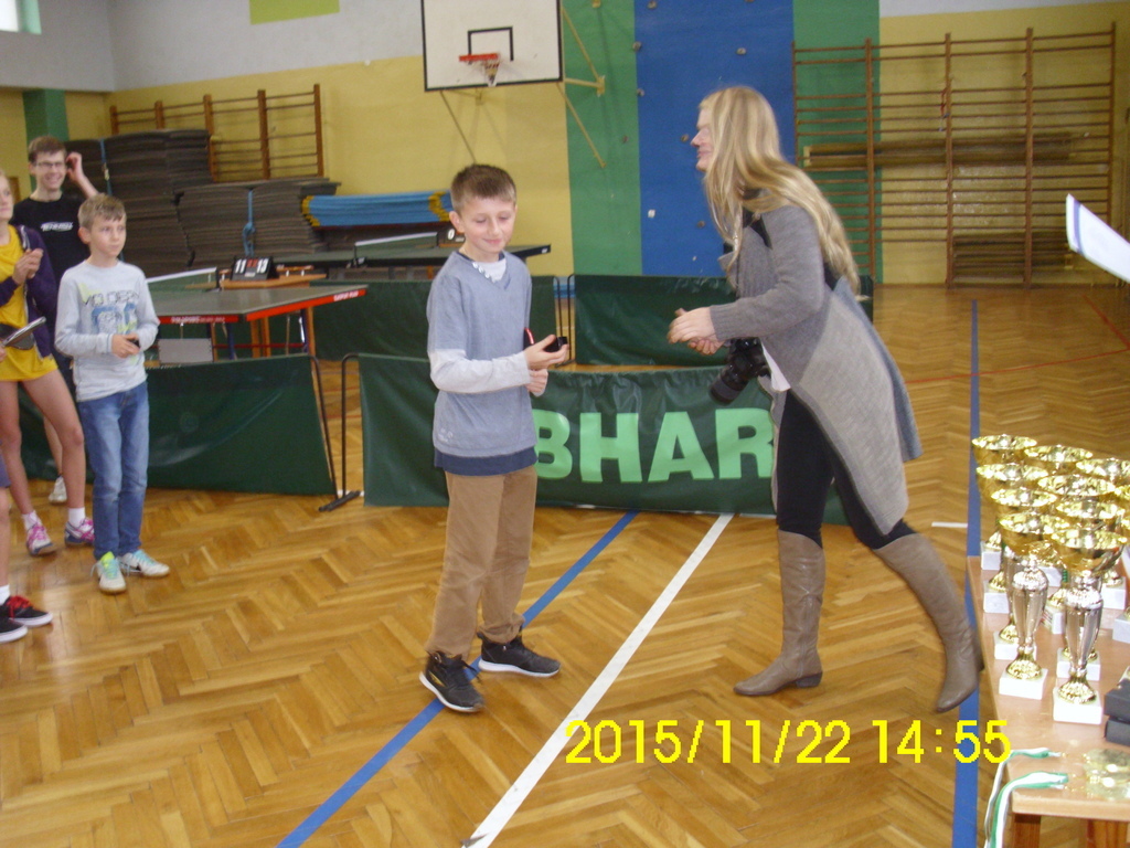 22 listopada odbył się w MOSIR w Sieradzu Otwarty Turniej Tenisa Stołowego. Naszą szkołę reprezentowali: Michalina Szewczyk - III miejsce, Kacper Wożniak - V miejsce, Szymon Urbański - VII miejsce