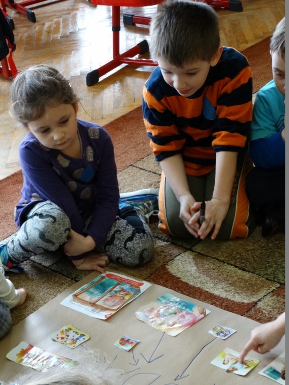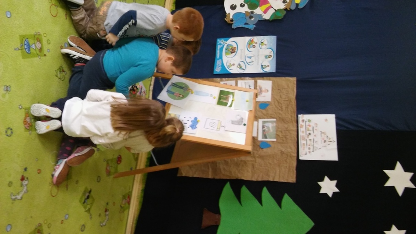 „Co zawdzięczamy wodzie?” – na tym zajęciu dzieci dowiedziały się o znaczeniu wody dla środowiska roślin i zwierząt. Uwaga dzieci została zwrócona na obieg wody w przyrodzie. Dzieci w grupach wykonywały plakaty związane z różnymi akwenami wodnymi ( morze, jezioro, rzeka).