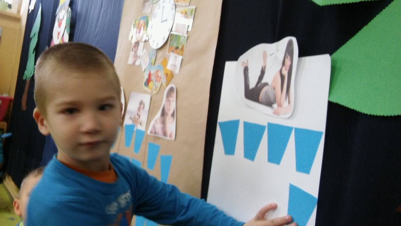 „Moja rodzina” – w trakcie tego zajęcia podkreślone zostało znaczenie wody dla zdrowia każdego członka rodziny. Zachęcano do picia wody zwłaszcza podczas choroby, kiedy nasz organizm jest osłabiony. Dzieci piły wodę, zachęcane przez Super-bohatera Krzysia i „Zdrojka”.