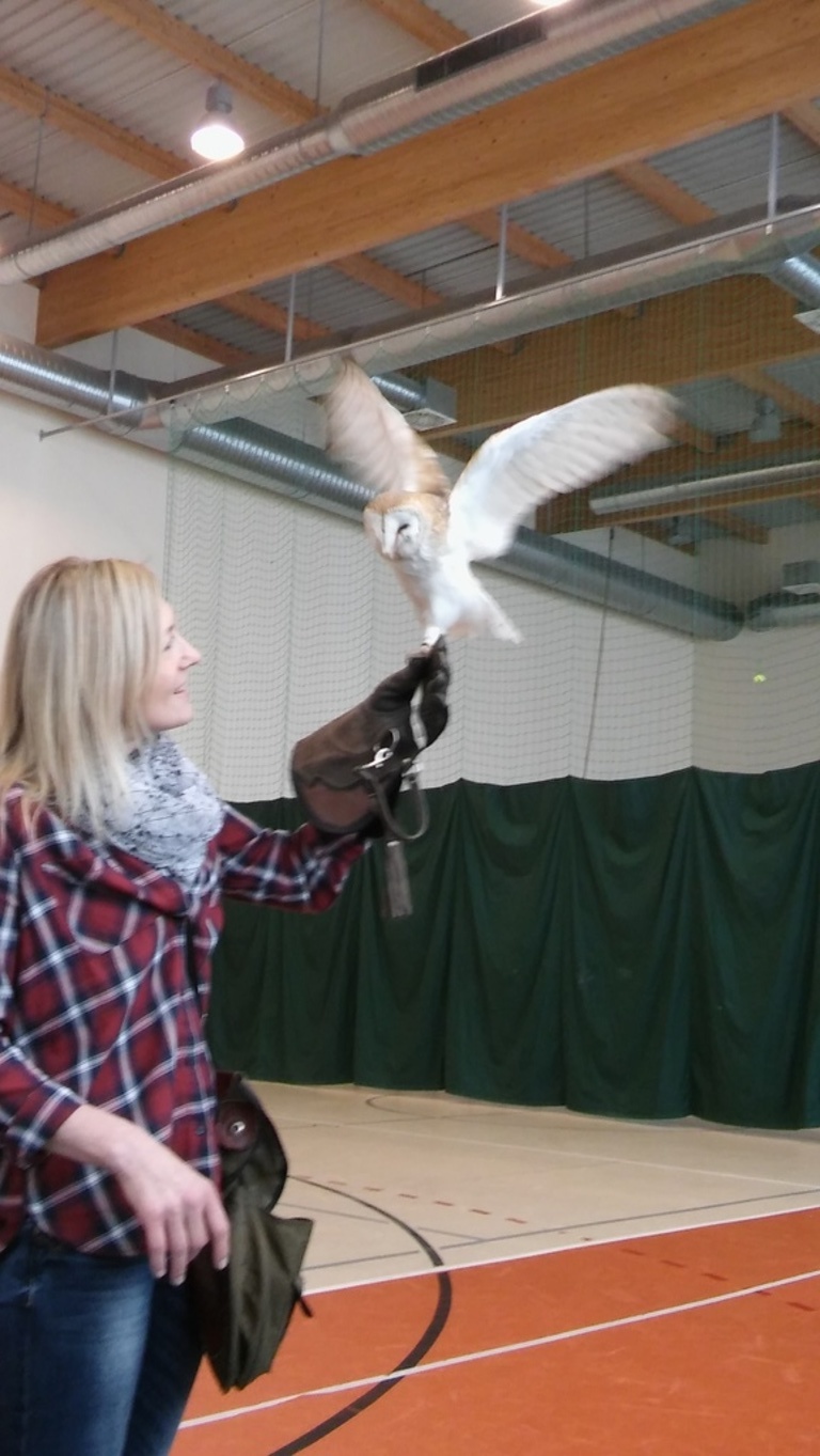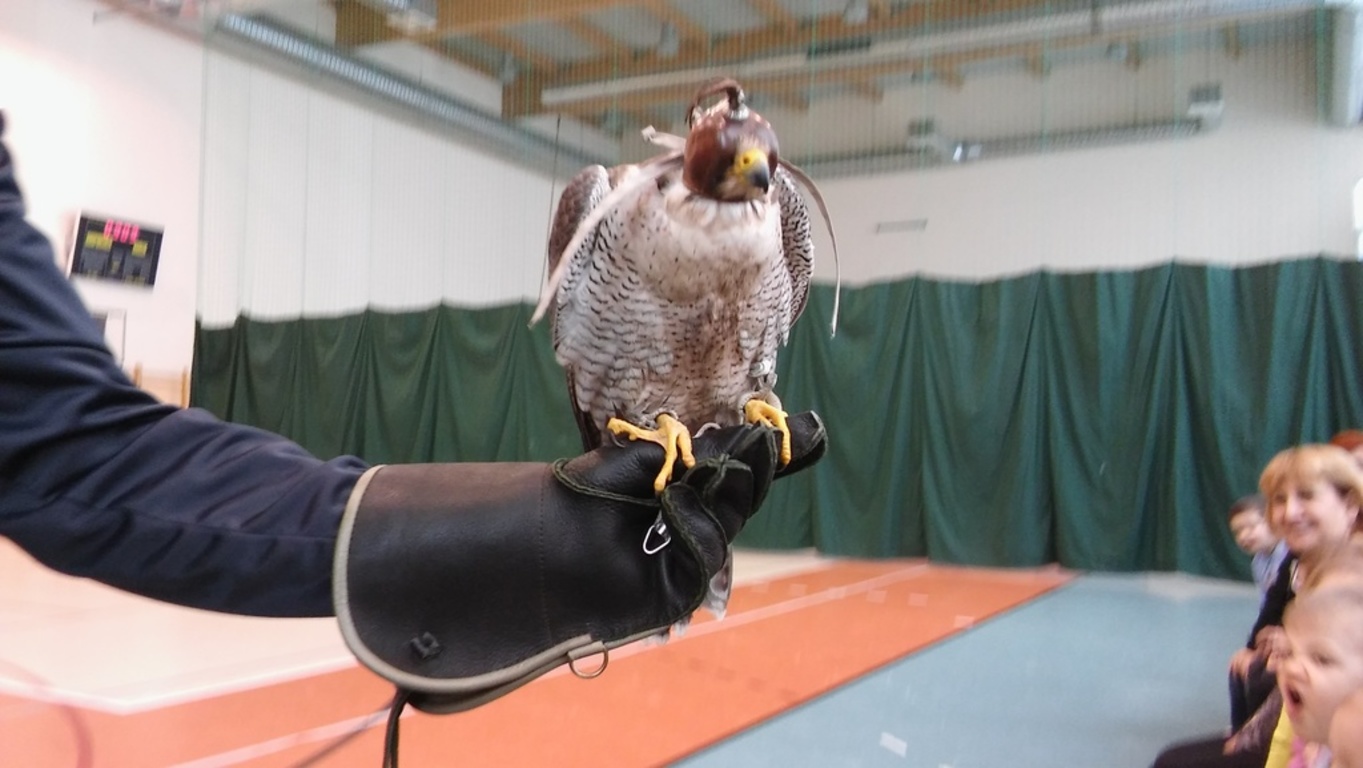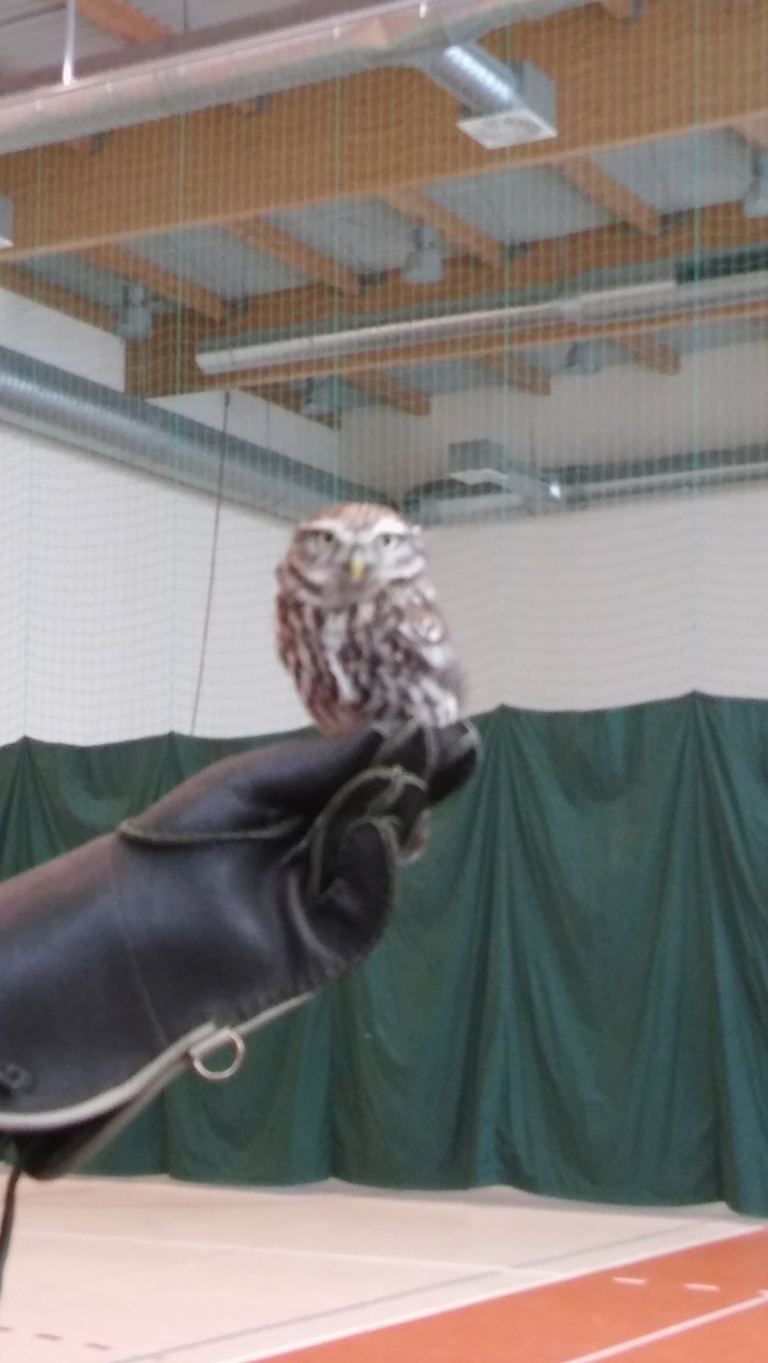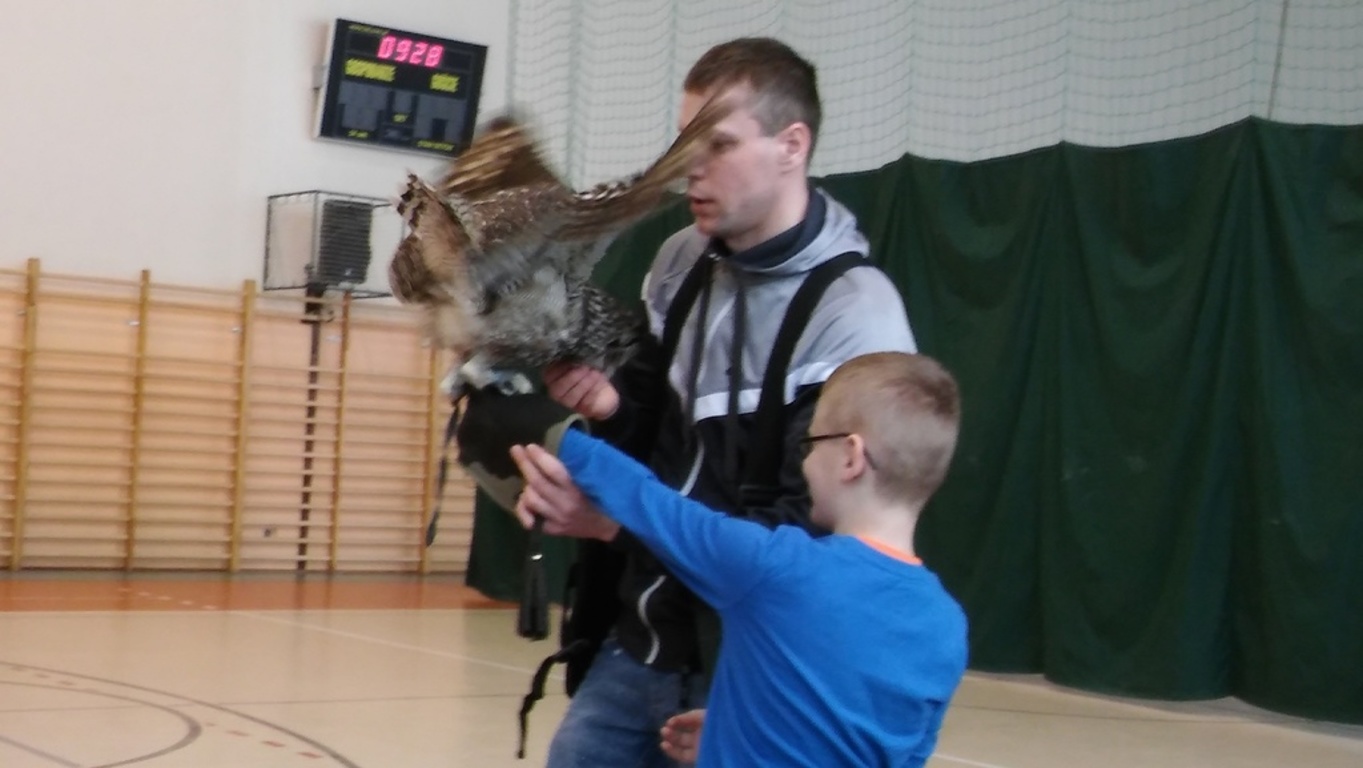 Przedszkolaki chciały na chwilkę zamienić się w małych przyrodników, w związku z tym postanowiliśmy zaprosić do naszej szkoły „Zielone lekcje” z ptaki drapieżnymi. Dzięki edukacji przyrodniczej na żywo, mogliśmy podziwiać specjalnie ułożone do pokazów i pracy z dziećmi sowy, sokoły i jastrzębie. Opiekunowie opowiadali jaką rolę spełniają ptaki w przyrodzie i czym się różnią od siebie. Każdy uczestnik na koniec lekcji miał możliwość zrobienia sobie zdjęcia z piękną sową - płomykówką o imieniu Fiona. Nasze przedszkolaki jak i starsi koledzy byli zadowoleni z bliskich kontaktów z ptakami drapieżnymi. Dziękujemy bardzo za odwiedziny.