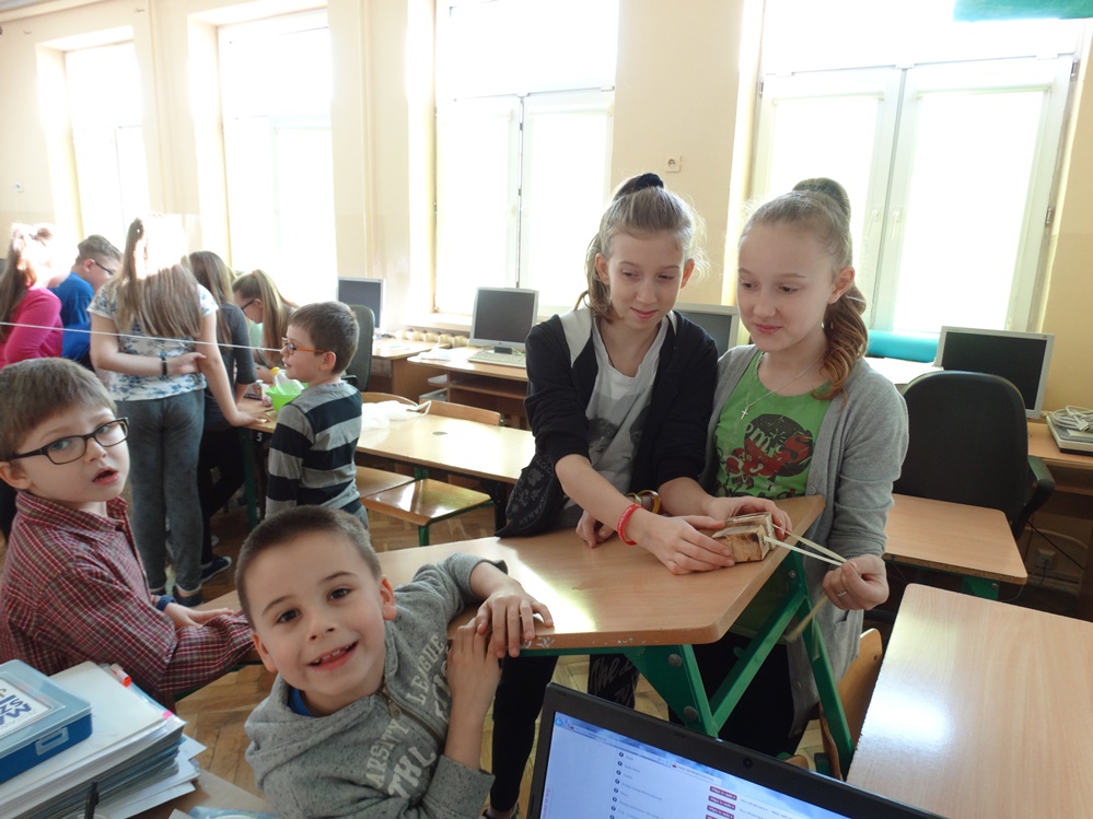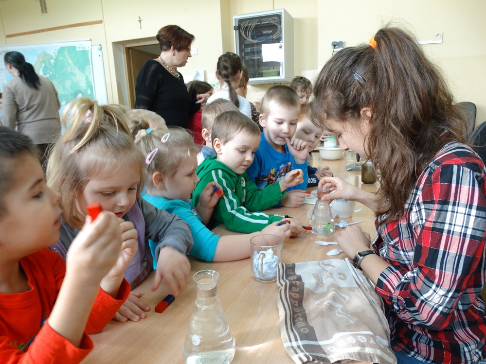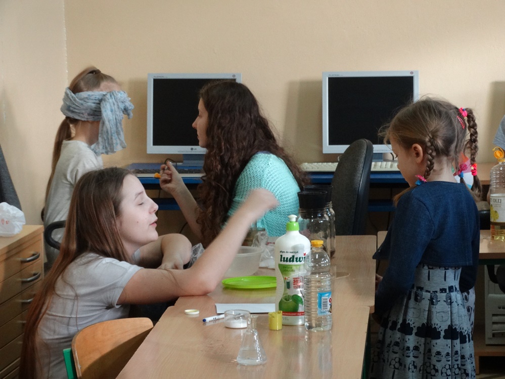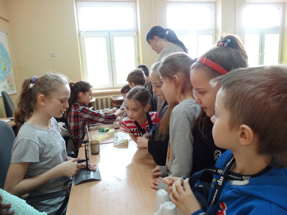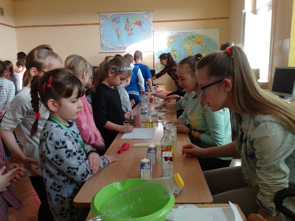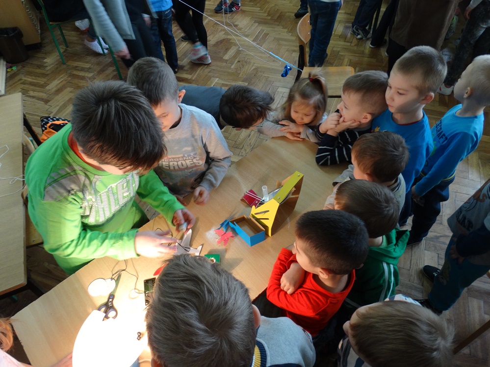 Uczniowie z młodszych klas mieli możliwość sprawdzenia jak działa siła magnetyczne i siła tarcia. Ponadto samodzielnie tworzyli obwody elektryczne, dzięki którym poznali sposoby przetwarzania energii słonecznej na elektryczną. Poznali niektóre właściwości powietrza. Dodatkowo mogli wykorzystać swoje zmysły smaku oraz węchu.