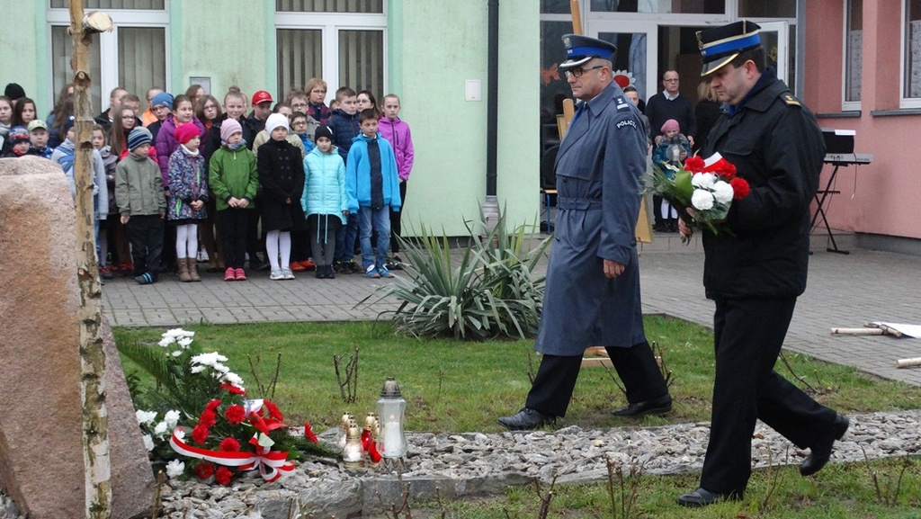 w Czechach. Odczytano apel poległych, złożono wiązanki kwiatów i zapalono znicze pod tablicą upamiętniającą: