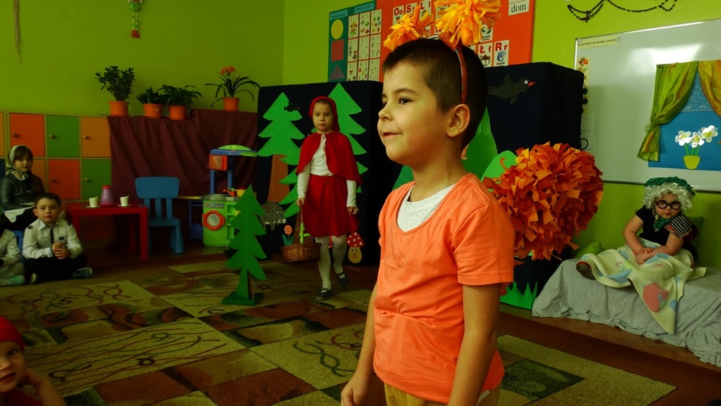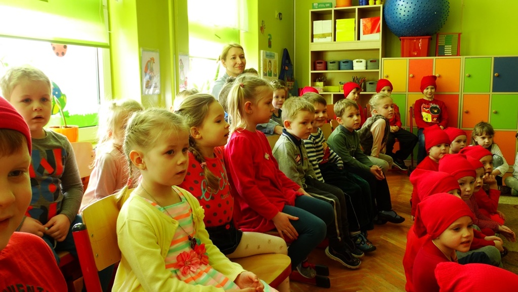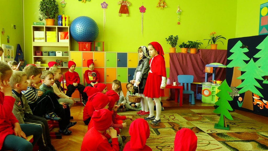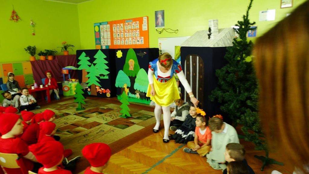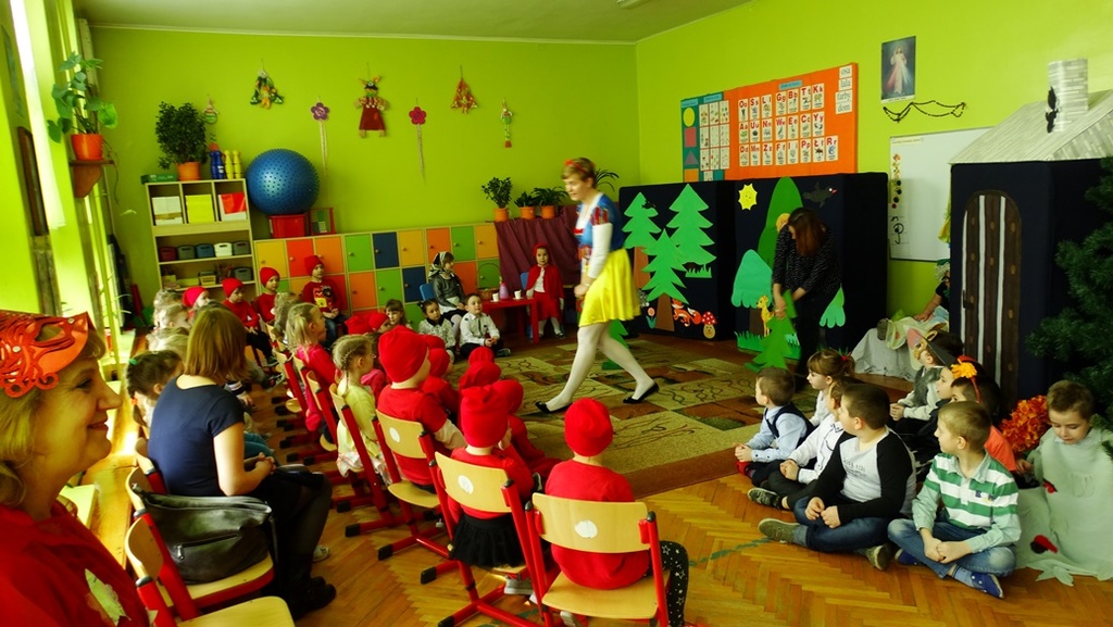 W dniu 1 marca mieliśmy przyjemność gościć dzieci z oddziału przedszkolnego MIODOLUDKI z Krobanowa . Tego dnia nasze dzieci z oddziałów przedszkolnych pod okiem Wiesławy Jabłońskiej i Anny Pawlikowskiej przedstawiły dla gości bajkę pt. „Czerwony Kapturek „ . Najmłodsze dzieci zamieniły się na chwilę w krasnoludki i zatańczyły taniec z Królewną Śnieżką . Poczęstunek dla gości i pozostałych dzieci został przygotowany przez rodziców z oddziału przedszkolnego „Krasnoludki”. Dzień upłynął na wspólnym oglądaniu bajki, która przestrzegła dzieci przed rozmowami z nieznajomymi. Wspólne zabawy i słodki poczęstunek zakończył udany dzień.