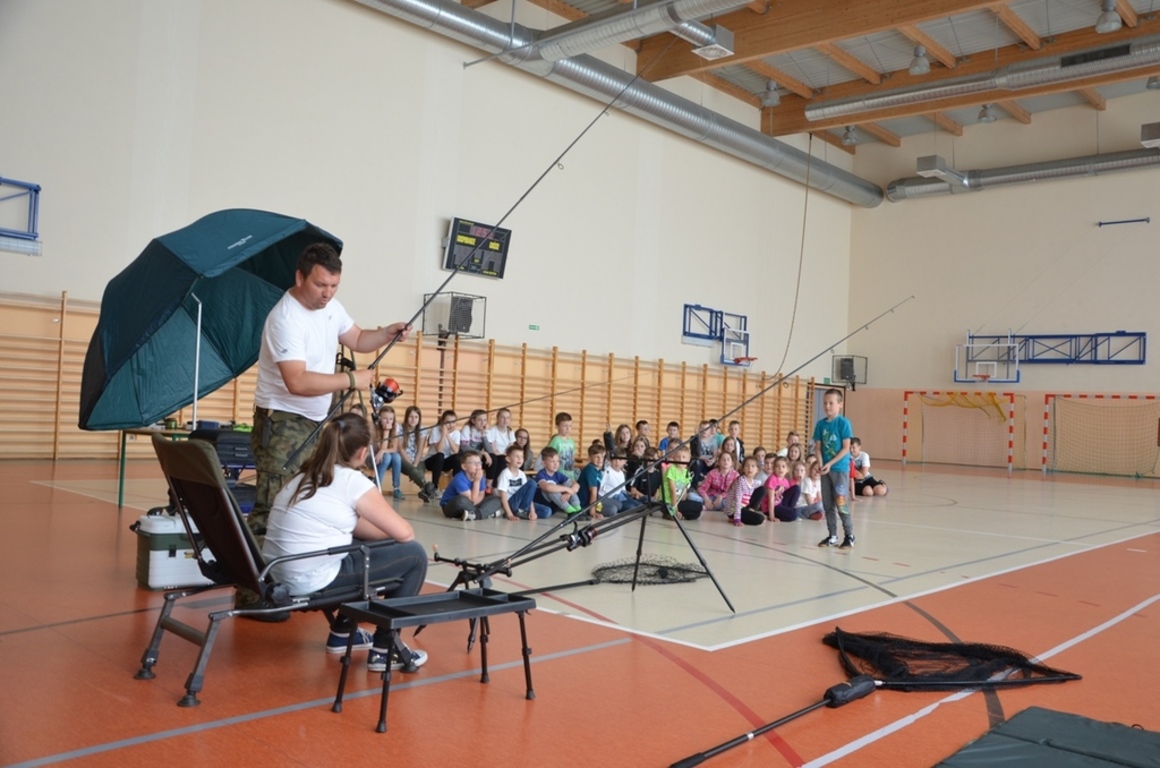 Mieliśmy okazje gościć w naszej szkole specjalnego gościa- Pawła Urbaniaka, który w wolnych chwilach zajmuje się wędkarstwem. Ponadto jest członkiem Polskiego Związku Wędkarskiego, aktywnie organizuje dla dzieci i młodzieży zawody wędkarskie w Kole Wędkarskim Zapolice. Uczniowie mogli uczestniczyć w pokazie łowienia ryb, zapoznali się ze specjalistycznym sprzętem wędkarskim i niezbędnymi akcesoriami tj. wagi, skrzynki wędkarskie, przynęty zanęty , obejrzeli wędki, sprawdzili jak działa sygnalizator elektroniczny, mogli posiedzieć na fotelu wędkarskim. Gość zaprezentował charakterystyczne elementy ubioru wędkarza.