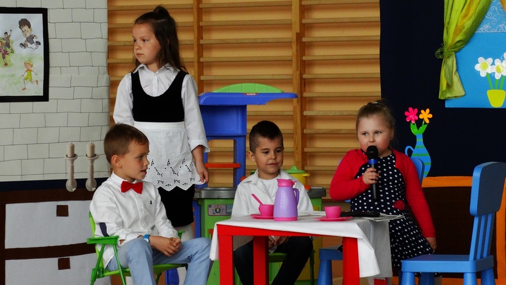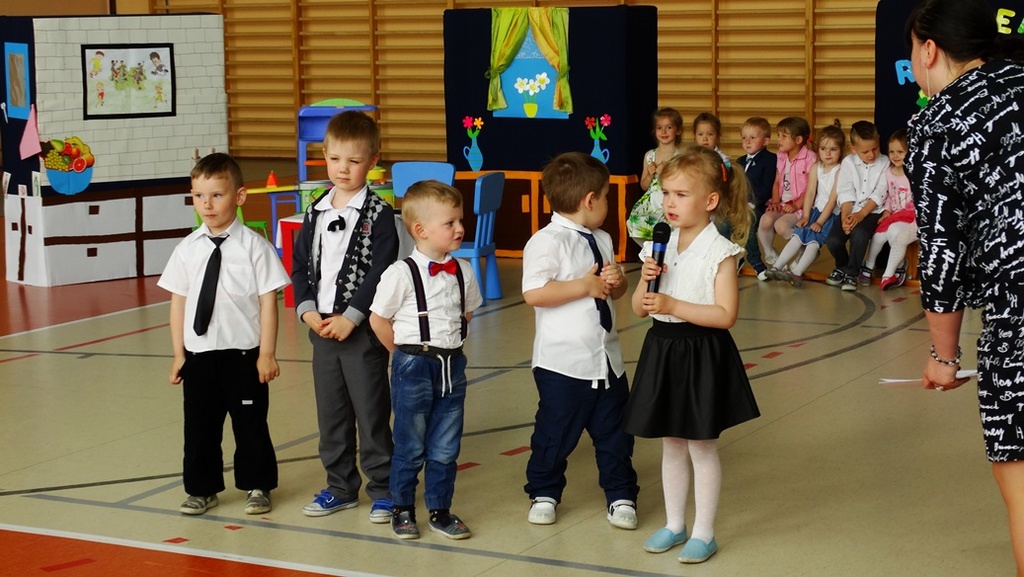 Dzień Mamy i Taty jest jednym z najpiękniejszych świąt w roku, pełnym miłych życzeń i kwiatów, będących wyrazem miłości i szacunku dla rodziców. Nasze przedszkolaki i „zerówiaki” jak co roku postanowiły w szczególny sposób uczcić to święto. Dlatego też 26 maja przygotowały część artystyczną z okazji święta rodziców. Nad przygotowaniem całej uroczystości oraz dekoracjami czuwały wychowawczynie. Nasze przedszkolaki z niecierpliwością i wielkim przejęciem czekały na swoich gości, dały znakomity popis swoich recytatorsko-wokalnych zdolności i umiejętności, tańcząc, śpiewając piękne piosenki oraz deklamując wierszyki dla mamy i taty. Na twarzach rodziców widać było i radość i wzruszenie, a swoje pociechy nagrodzili brawami. Dzieci złożyły rodzicom serdeczne życzenia oraz wręczyły własnoręcznie wykonane upominki. Na zakończenie zaprosiliśmy wszystkich gości na słodki poczęstunek przygotowany przez niezawodne mamy naszych przedszkolaków. Był to bardzo udany, miły i wesoły dzień. Dziękujemy rodzicom za liczne przybycie.