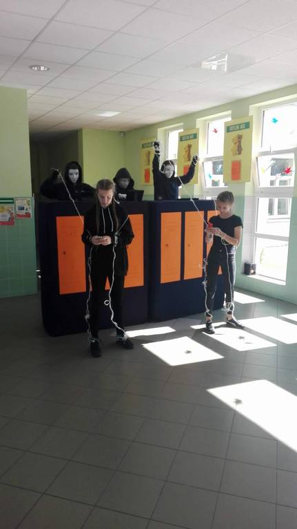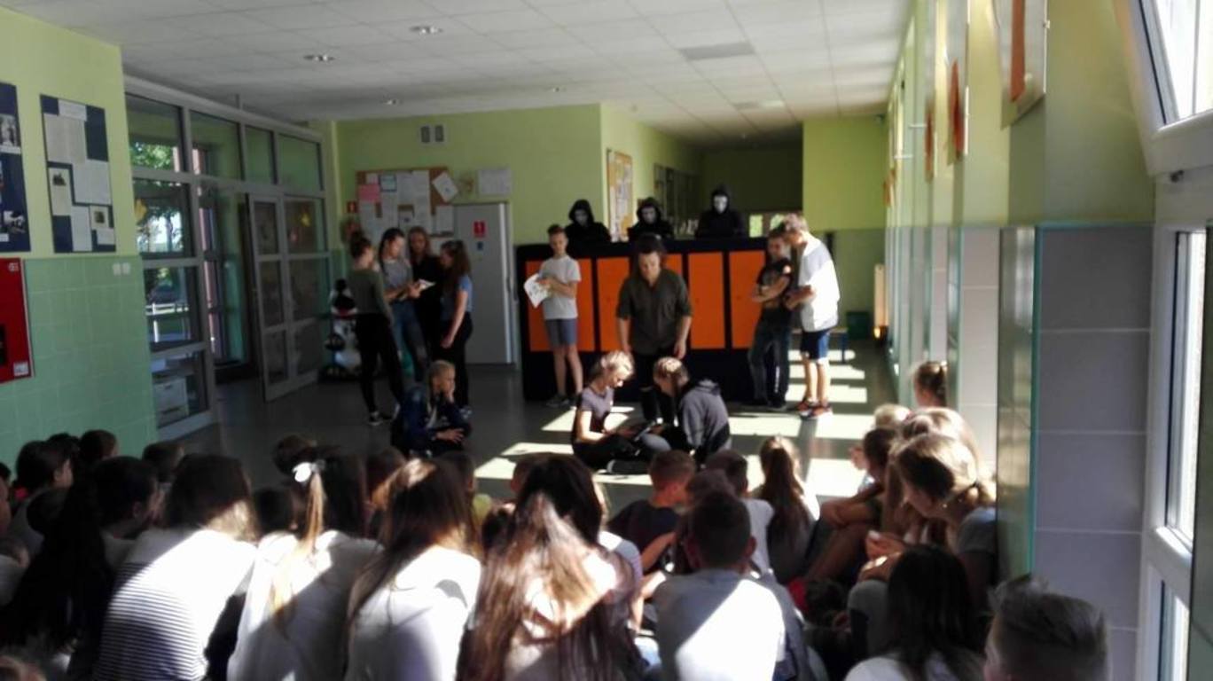 „Błękitny przyjaciel”. Taki tytuł miało autorskie przedstawienie przygotowane i wystawione przez uczniów Zespołu Szkół w Czechach dla naszych uczniów. Ta krótka i bardzo wymowna inscenizacja była interpretacją tego, co w ostatnim czasie dzieje się w cyberprzestrzeni. Nasi uczniowie z ogromną uwagą przyglądali się zachowaniu bohaterów. Przedstawienie było niezwykłą formą profilaktyki zachowań ryzykownych, profilaktyką której nie zastąpi żadna pogadanka. Dziękujemy młodym aktorom z Czech i ich opiekunce Pani Anecie Niewiadomskiej. Liczymy na dalszą współpracę.