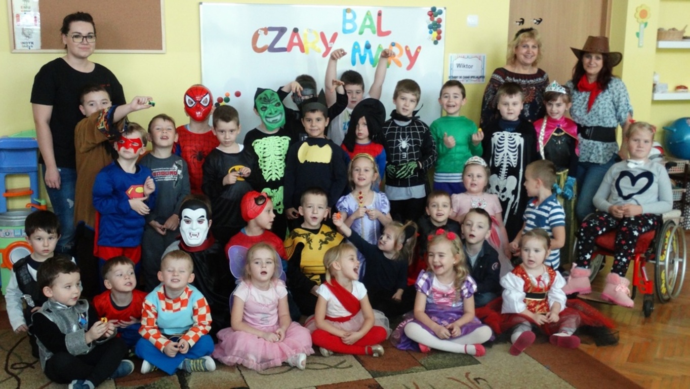 Dzieci z oddziałów przedszkolnych w dniu 23.11.2017r uczestniczyły w balu, na który przybyły wróżki, czarodzieje, rycerze, superbohaterowie. Wspólne tańce i zabawy miały na celu zintegrowanie dzieci. Słodki poczęstunek zakończył bal.