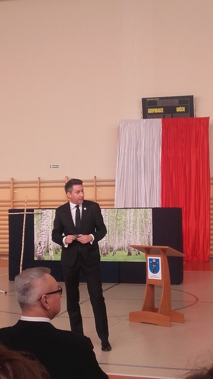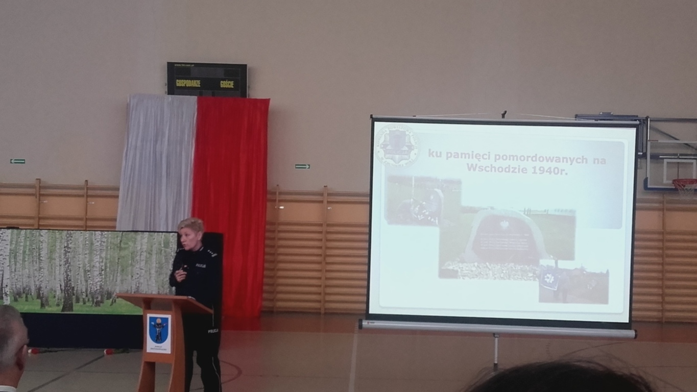 Dyrektor Szkoły Podstawowej w Wojsławicach Marek Guć zapoznał zebranych z szkolną inicjatywą upamiętniająca funkcjonariuszy Policji Państwowej, którzy nigdy nie powrócili z „nieludzkiej ziemi.". Przypomniał, że na terenie Szkoły Podstawowej w Wojsławicach, w kwietniu 2010 roku posadzono trzy dęby ku czci funkcjonariuszy Policji Państwowej: starszego posterunkowego Szymona Jagiełły, starszego posterunkowego Władysława Konata, starszego posterunkowego Antoniego Sokołowskiego. 23 kwietnia 2012 roku przy Szkole Podstawowej w Wojsławicach uroczyście odsłonięto i poświęcono kamień wraz z tablicą upamiętniającą wydarzenia z 1940 roku. Natomiast 26 kwietnia 2017 roku posadzony został czwarty Dąb Pamięci ku czci funkcjonariusza Policji Państwowej aspiranta Antoniego Grębowicza zamordowanego w kwietniu w 1940 r. Od 7 lat, w kwietniu każdego roku, na terenie szkoły organizowane są obchody Gminnego Dnia Katyńskiego, w których uczestniczą przedstawiciele władz powiatowych i gminnych, służb mundurowych, uczniowie oraz rodziny pomordowanych. Na zakończenie warsztatów, w asyście uczniów klas mundurowych z ZSR CKU w Wojsławicach, złożone zostały wiązanki pod obeliskiem upamiętniającym zamordowanych na Wschodzie.