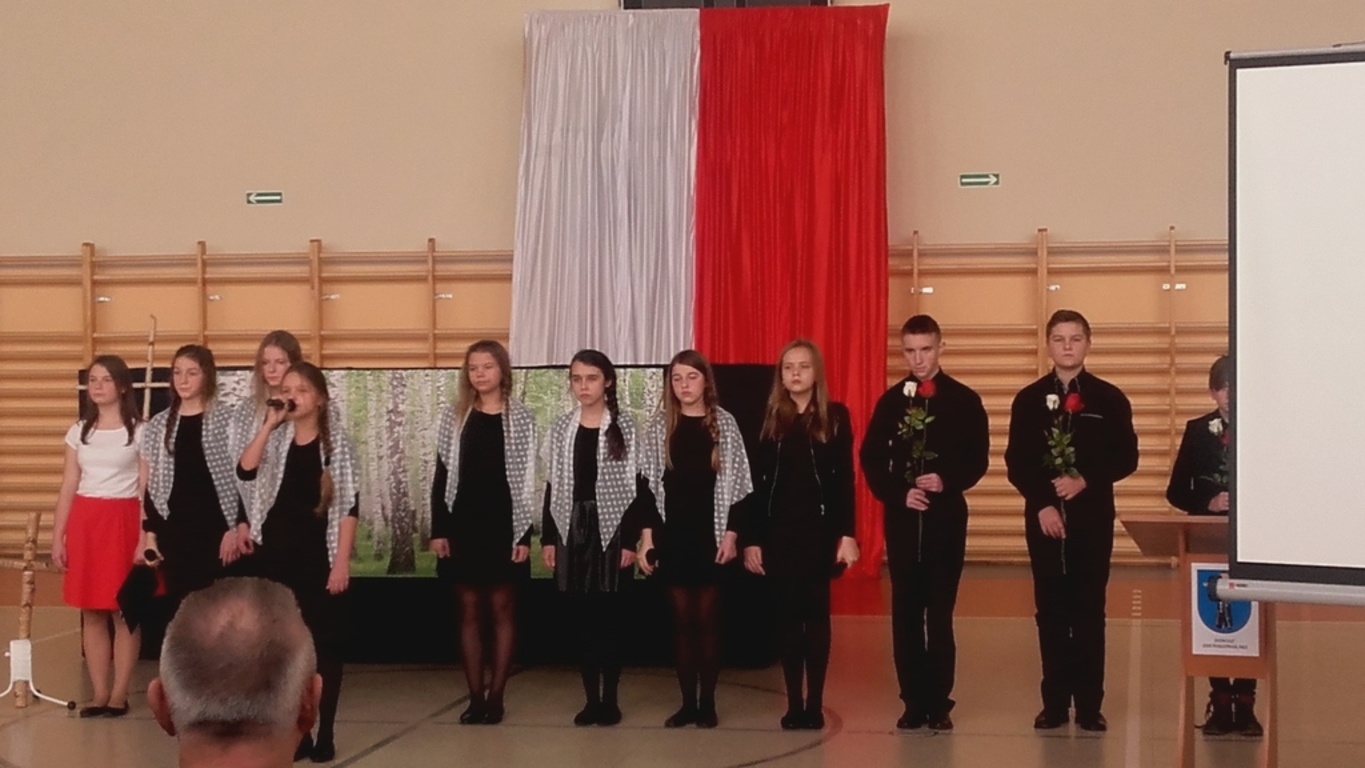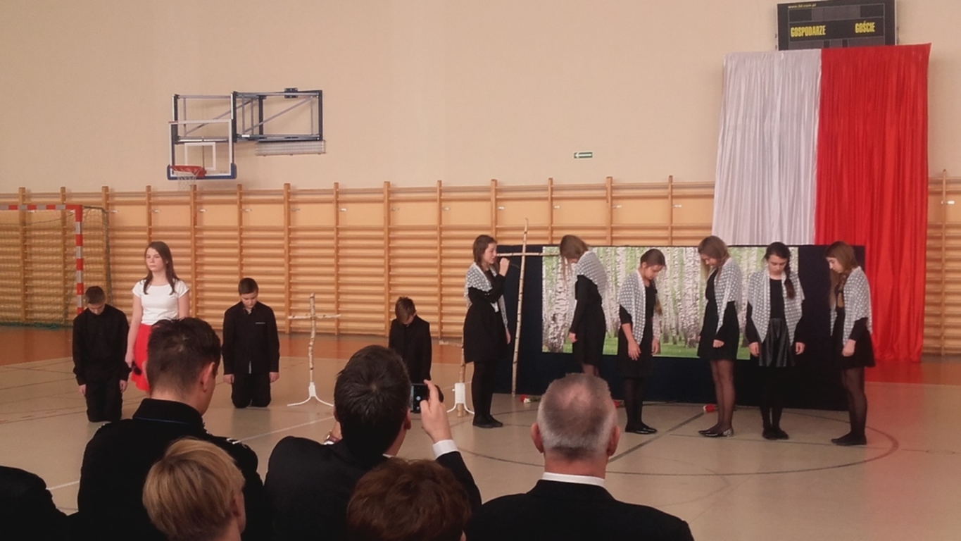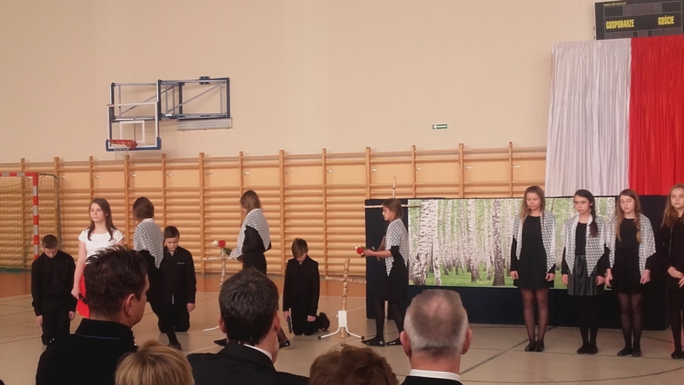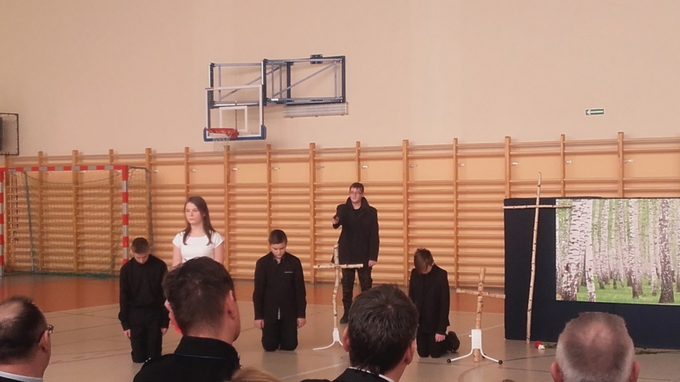 Tragizm losów więzionych i pomordowanych na Wschodzie przedstawili we wzruszającej inscenizacji poetycko - muzycznej uczniowie klasy VI i VII Szkoły Podstawowej w Wojsławicach pod kierunkiem nauczyciela języka polskiego, pani Agnieszki Ignaczak. Huk wystrzeliwanych w kierunku bezbronnych jeńców pocisków, brzozowe krzyże oraz smutek ich bliskich wprawił wszystkich obecnych w zadumę i refleksję.