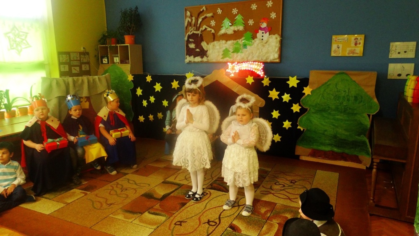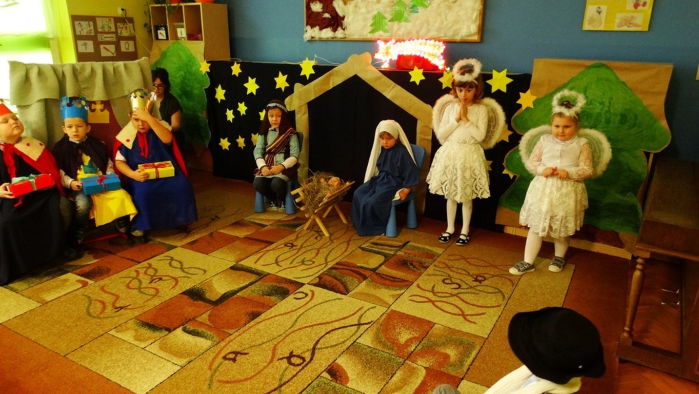 Do oddziału przedszkolnego „0” zawitał długo oczekiwany gość- Mikołaj. Po obejrzeniu inscenizacji „Jasełek” w wykonaniu dzieci obdarzył wszystkich prezentami. Wraz z Mikołajem i zaproszonymi gośćmi dzieci zjadły słodki poczęstunek przygotowany przez rodziców. Spotkanie zakończyło się wspólnym śpiewaniem kolęd i pastorałek. Do zobaczenia Mikołaju za rok.