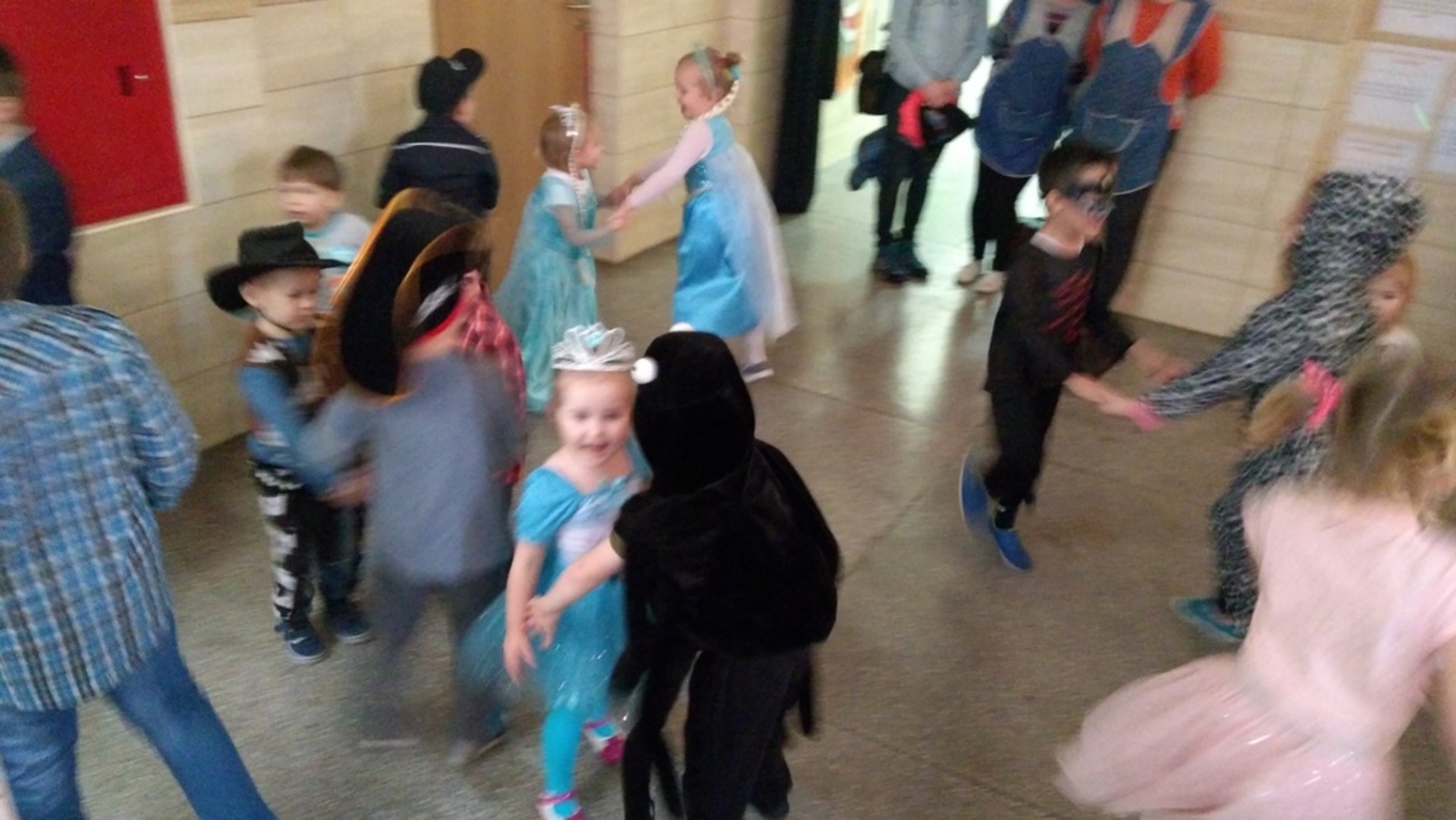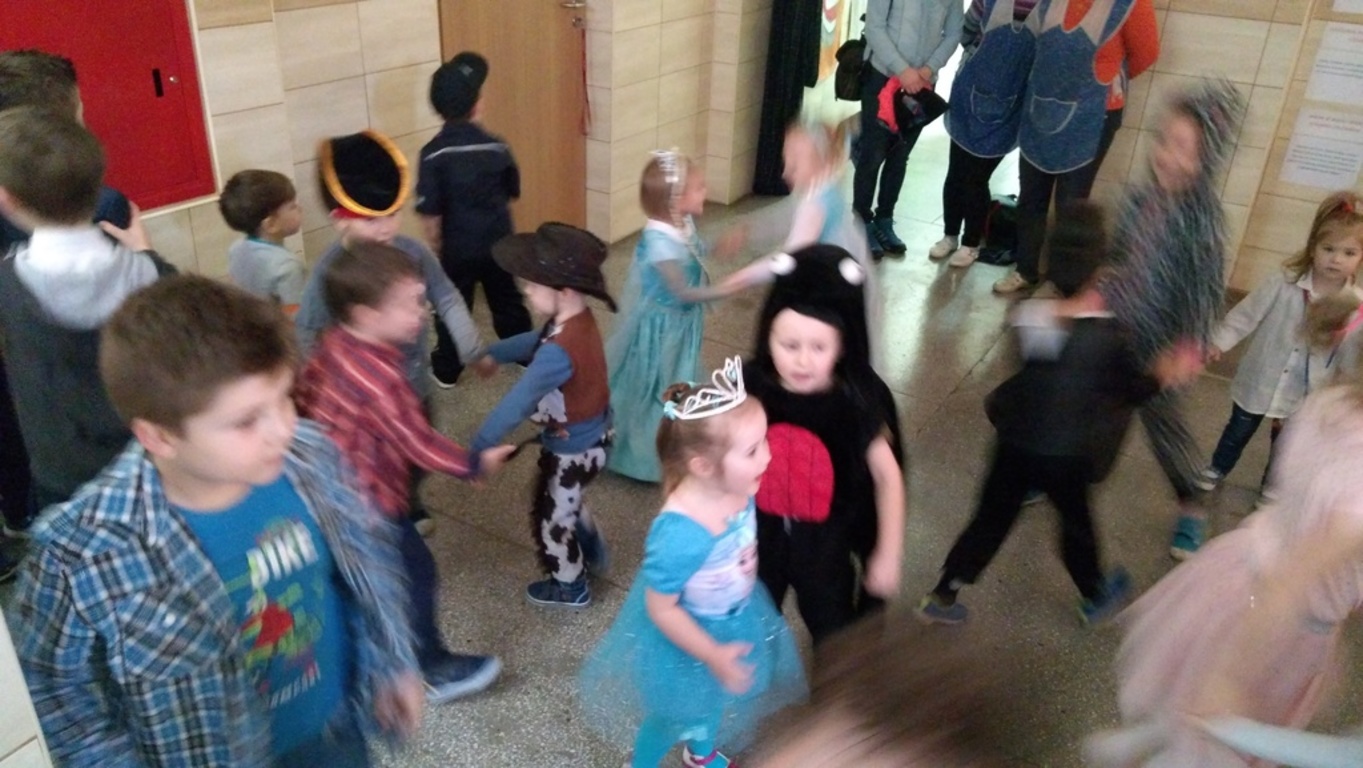 Jak co roku o tej porze wszystkie dzieci w naszej szkole zamieniają się w różne postacie. W śród nich są, np.: rycerze, kowboje, piraci albo księżniczki, cyganki, czy pająki. Wszystko to za sprawą zabawy karnawałowej, która budzi w każdym dziecku małego tancerza .I my – przedszkolaki również braliśmy udział w tym szkolnym wydarzeniu. Dla nas to wielka atrakcja, bo ze zwykłego dziecka możemy przeobrazić się w postać ze swojej ulubionej bajki i w rytmie dziecięcych przebojów powyginać nasze ciała i poruszyć wyobraźnię.