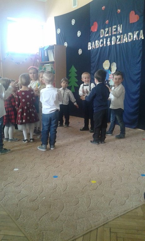 W dniu 22.01.2018r. nasze kochane „ Krasnoludki” zaprosiły swoich dziadków na inscenizację ruchowo – muzyczną. Licznie przybyli goście mogli podziwiać swoje wnuki w przygotowanym dla nich przedstawieniu. Przedszkolaki wręczyły również małe podarunki dla swoich kochanych dziadków, a dzięki pomocy rodziców mogliśmy poczęstować ich słodkościami oraz kawą i herbatą. Dziadki byli zachwyceni umiejętnościami przedszkolaków.
