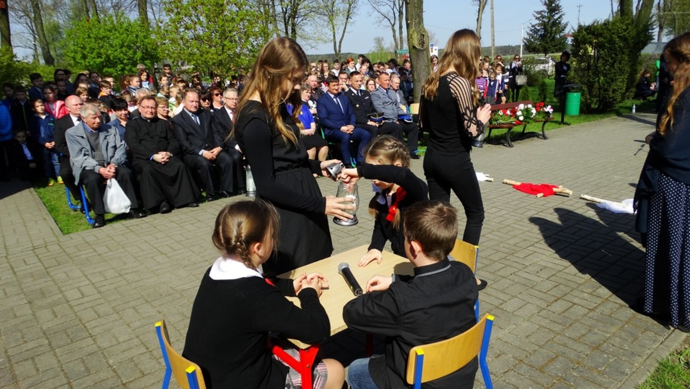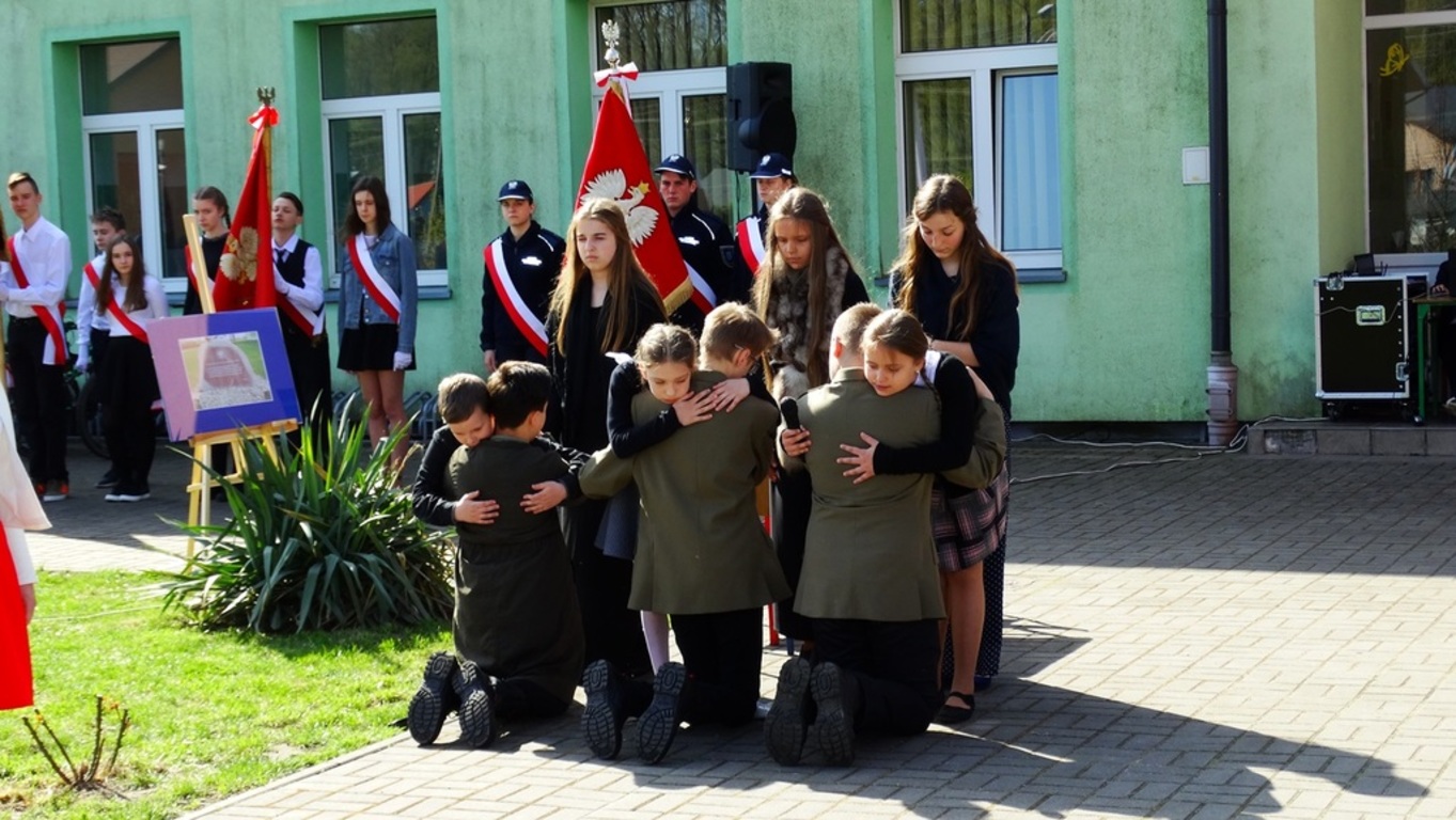– słowa tej z serca płynącej modlitwy szeptały pokolenia Polaków. Powtarzały ją przez dziesięciolecia kobiety, których mężowie, bracia, synowie trafili do sowieckiej niewoli we wrześniu 1939 roku, gdzie przepadli bez wieści. A nazwiska ich po latach pojawiły się po latach na listach mordu katyńskiego.18 kwietnia w Szkole Podstawowej im. Adama Mickiewicza w Wojsławicach zorganizowano obchody VII Gminnego Dnia Katyńskiego. To na terenie naszej szkoły przy obelisku posadzone zostały cztery Dęby pamięci ku czci: Władysława Konata, Antoniego Sokołowskiego, Szymona Jagiełły i Antoniego Grębowicza. Pragnąc uczcić ofiary zbrodni katyńskiej, uczniowie klasy siódmej, szóstej i czwartej pod kierunkiem pani Agnieszki Ignaczak wystawili 18 kwietnia 2018 roku w Szkole Podstawowej w Wojsławicach inscenizację słowno - muzyczną ukazującą dramatyzm tamtych lat. Odnieśli się w niej nie tylko do sytuacji wziętych do niewoli żołnierzy, ale także ukazali ogrom bólu i cierpienia, które narodziły się w sercach ich rodzin. Uczniowie oddali tym samym cześć zamordowanym.Wspaniałą dekorację przygotowały: Pani Dorota Szewczyk i Pani Sylwia Kałuda.O przygotowanie muzyczne wokalistów zadbał Pan Tadeusz Goleczko.Było to kolejne przedstawienie, które okazało się wspaniałą lekcją historii, zapamiętaną na długo.
