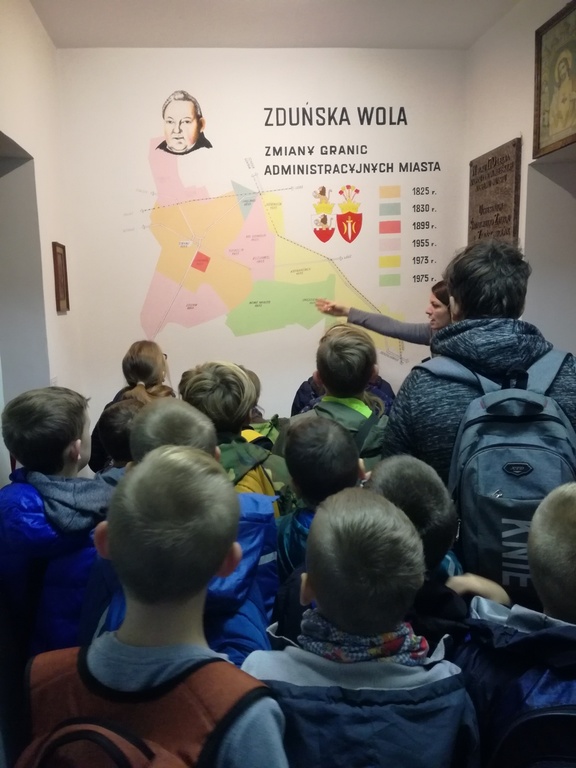 W dniu 23.X. 2018 chętni uczniowie klas I-VIII wraz z opiekunami wybrali się na wycieczkę do Zduńskiej Woli w celu zwiedzania Muzeum Historii Miasta, Bazyliki Mniejszej Najświętszej Maryi Panny a takżę zwiedzania Muzeum św. Maksymiliana Kolbe. Wycieszka powiązana była ze zbliżającą się 100 rocznicą Odzyskania Niepodległosci. Celem wycieczki było kształtowanie postaw patriotycznych, poznanie historii miasta Zduńskiej Woli, Bazyliki Mniejszej pw. Wniebowzięcia Najświętszej Maryi Panny i domu urodzin św. Maksymiliana Kolbe. Ponadto, uczniowie zostali uwrazliwieni na piękno kultury narodowej, a także zostali upomnieni o przestrzeganiu zasad odpowiedniego zachowania w miejscach publicznych (religijnych).