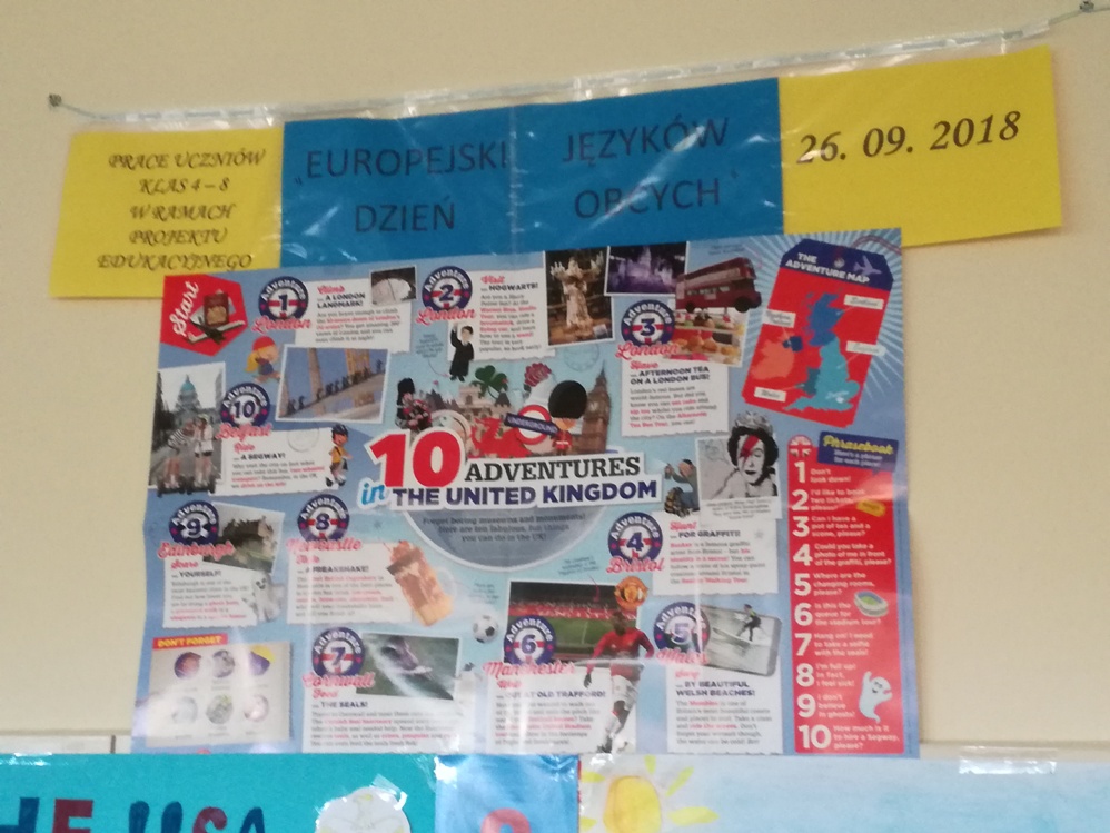 W dniu 26. 09.2018 w Szkole Podstawowej im. Adama Mickiewicza po raz pierwszy odbył się konkurs z języka angielskiego w związku z Europejskim Dniem Języków Obcych. Konkurs sprawdzał wiedzę uczniów na temat krajów anglojęzycznych takich jak: Anglia, Irlandia Półcnosna, Walia, Kanada i Stany Zjednoczone. Konkurs miał jeden etap w formie pisemnej. Chętni uczniowie z klas IV-VIII zgłaszali swój udział do 20.09.2018 roku, co więcej każda klasa miała za zadanie przygotować plakat przedstawiający jeden dowolny kraj anglojęzyczny. Plakaty zostały przedstawione oraz zawieszone w korytarzach szkoły, tak aby wzbudzić zainteresowanie wśród uczniów historią, lutura, geografią a także zwyczajami panującymi w danym kraju. I miejsce w konkursie wiedzy o krajach anglojęzycznych zdobyła uczennica klasy VA Maria Krawczyk, II miejsce uczennica klasy VIII – Malwina Antoszczyk, III miejsce- uczeń klasy VII – Szymon Urbański. Jury przyznali również dyplomy dla klasy która przygotowała najciekawszy plakat. Miejsce I zdobyła klasa VI, miejsce II- klasa VII, miejsce III – klasa VA.Organizatorami konkursu były Paulina Fiks oraz Joanna Klimczak GRATULUJEMY I ŻYCZYMY DALSZYCH SUKCESÓW!!!