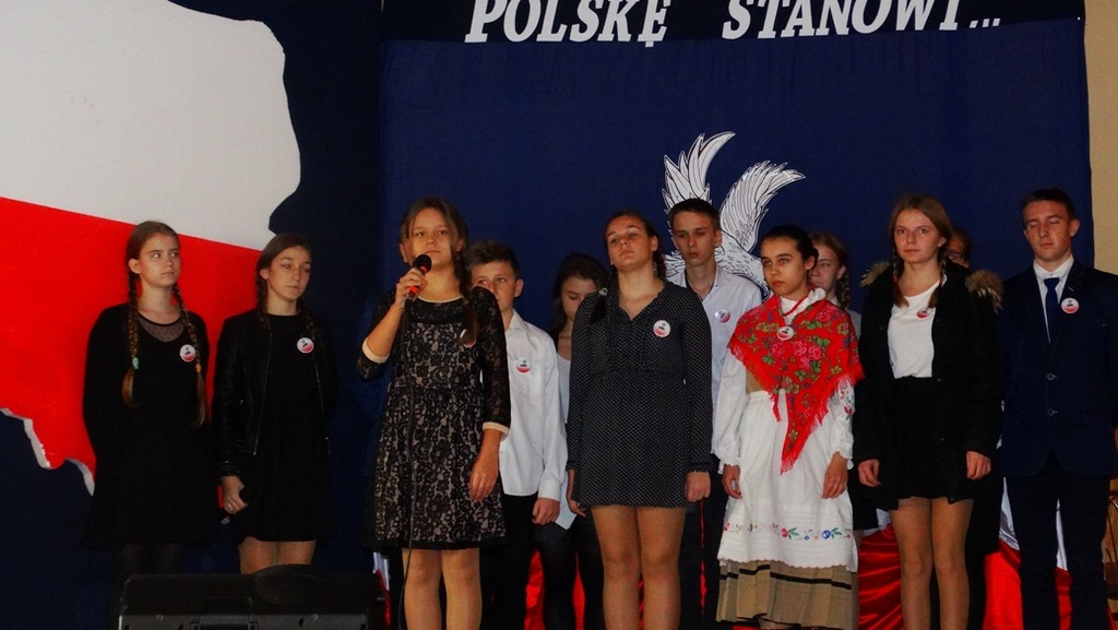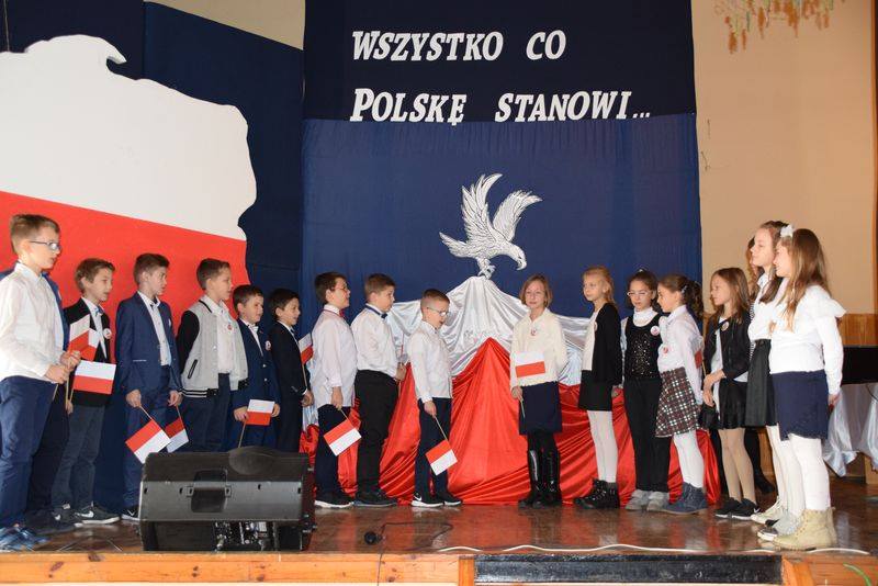 8 listopada w Szkole Podstawowej im. Adama Mickiewicza odbył się Koncert Pieśni Patriotycznych zorganizowany w ramach projektu „Niepodległa – Wszystko, co Polskę stanowi”. Koordynatorem projektu jest Pani Agnieszka Ignaczak, a inicjatorem Pan Tadeusz Goleczko we współpracy ze wszystkimi nauczycielami Szkoły Podstawowej w Wojsławicach. Idea takiego muzycznego świętowania niepodległości zrodziła się z przekonania, iż muzyka była i jest ważnym spoiwem naszej kultury codziennej i odświętnej. W przeszłości towarzyszyła walce o przetrwanie, łączyła nas i wzmacniała naszą tożsamość narodową. Dzisiaj zabytki polskiej kultury muzycznej i wciąż popularne pieśni patriotyczne wzbogacają świadomość naszych doświadczeń kulturowych z odległej i niedawnej przeszłości, zaś świętowanie 11 listopada jest coroczną okazją do zjednoczenia wokół wartości nadrzędnej jaką jest niepodległe państwo polskie.