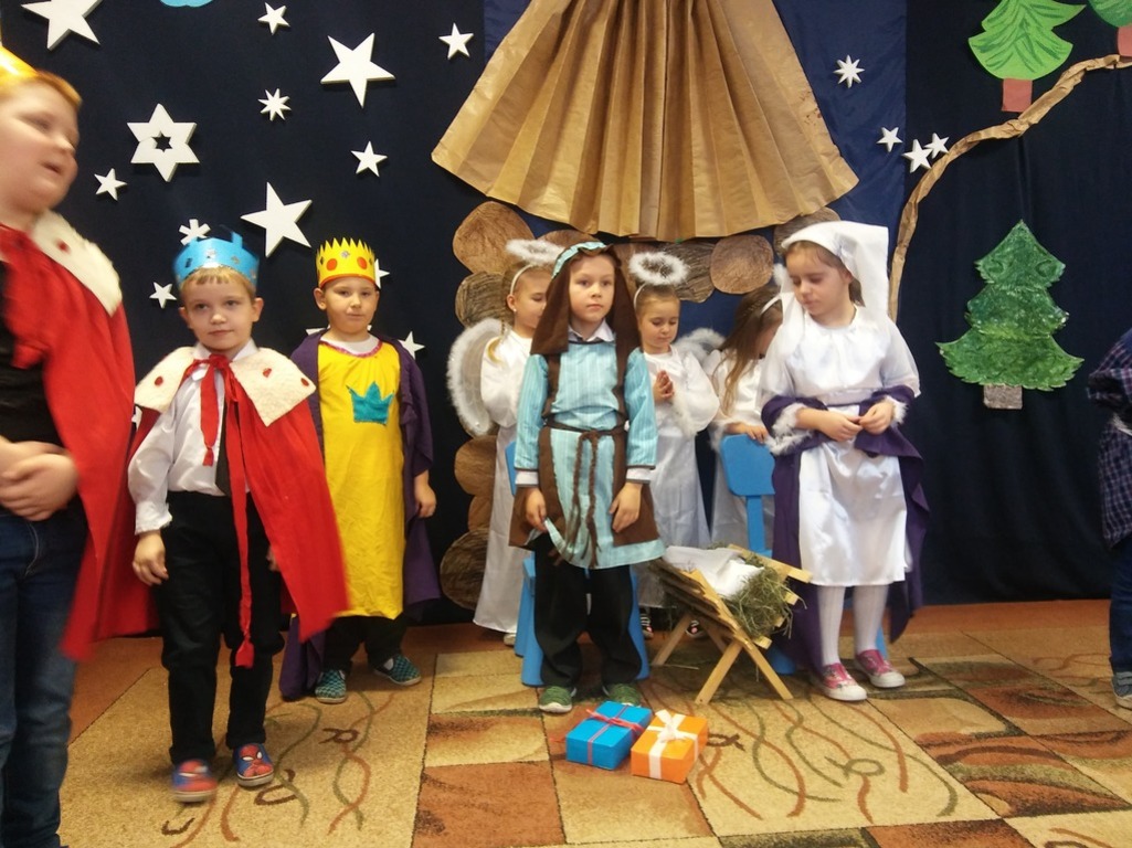 Święta Bożego Narodzenia to najbardziej rodzinne i ciepłe święta. Pozwalają one nam poczuć serdeczność i miłość wszystkich wokół. Wszyscy, zarówno dzieci jak i dorośli z niecierpliwością oczekują ich nadejścia, dlatego też dzieci z wielkim zaangażowaniem i zapałem przystąpiły do przygotowania jasełek. Maluszki ku uciesze swoich rodziców, w pięknych strojach przedstawiły historię narodzin Jezusa oprawioną kolędami i pastorałkami. Przepiękna scenografia nadała temu wyjątkowemu spotkaniu uroczysty i nastrojowy klimat.