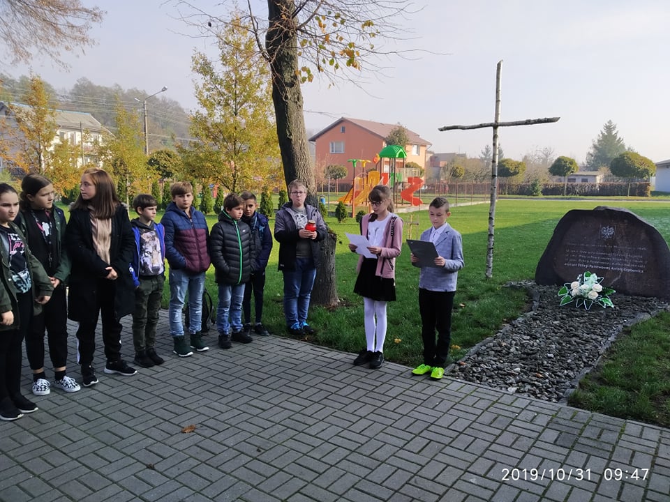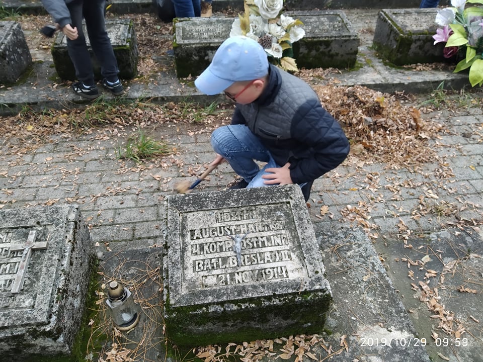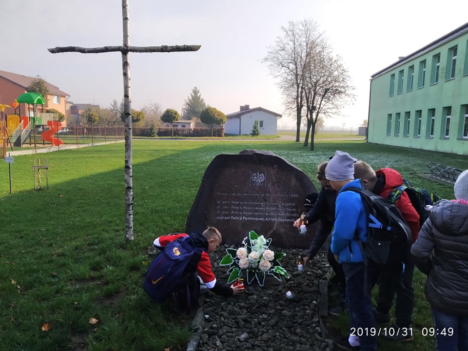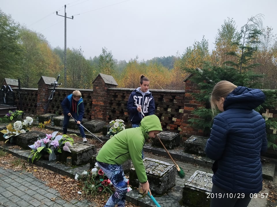 W tych szczególnych dniach zadumy wspominamy zarówno naszych bliskich, jak i tych, którzy zapisali się na kartach historii naszego kraju zarówno tej ogólnonarodowej jak i lokalnej. Pamięć o nich jest wyrazem szacunku dla ich życia i dokonań. Dbałość o tę pamięć jest naszym obywatelskim i ludzkim obowiązkiem, dlatego uczniowie wraz z nauczycielami z wielkim zaangażowaniem włączyli się w akcję rekomendowaną przez MEN. Odwiedzili lokalne miejsca pamięci, uporządkowali groby zasłużonych oraz zapalili znicze.