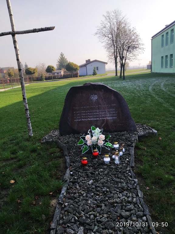 Uczniowie nie zapomnieli również o szczególnym miejscu dla naszej społeczności, którym jest tablica upamiętniająca zamordowanych przez Rosjan w kwietniu 1940 roku. Na terenie naszej szkoły posadzono Dęby Pamięci ku czci: Władysława Konata, Antoniego Sokołowskiego i Szymona Jagiełły oraz Antoniego Grębowicza.