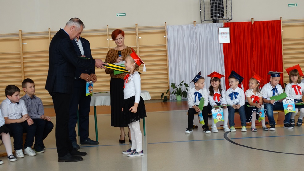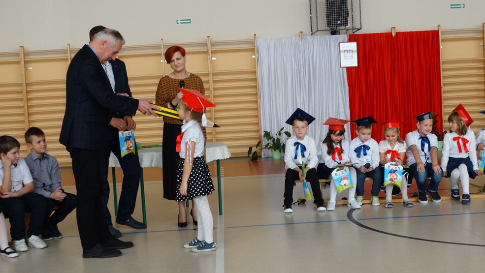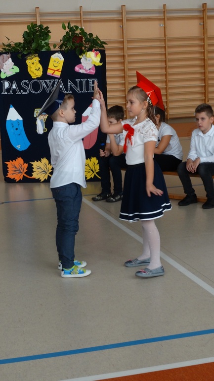 Uroczystość ślubowania uczniów klasy pierwszej to niezwykle ważny dzień dla pierwszaków. W naszej szkole odbył się w dniu 30.10.2019r . O tym, że najmłodsi są już gotowi do wstąpienia w poczet uczniów Szkoły Podstawowej im. Adama Mickiewicza w Wojsławicach świadczyła zaprezentowana przez nich ciekawa część artystyczna. Dzieci z klasy I pod opieką p. Lilli Dawid przy współpracy z klasą III i p. Małgorzatą Augustyniak w sposób wyjątkowy pokazały swoje zdolności recytatorskie i wokalne. Akt pasowania na ucznia dokonał dyrektor szkoły pan Marek Guć. Uczniowie klasy I otrzymali pamiątkowe dyplomy, drobne upominki od Rady Rodziców oraz od wszystkich życzenia radości, wspaniałych kolegów i koleżanek oraz wielu sukcesów w szkole.