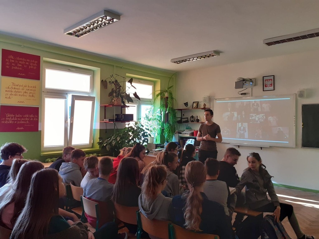 Uczniowie mogli poznać nie tylko młodego i utalentowanego autora, ale także wziąć udział w warsztatach motywacji. Było to ciekawe spotkanie z niewiele od nich starszym człowiekiem, człowiekiem mającym pasje, pokazującym, że nie da się „iść na łatwiznę”, chodzić „na skróty” i „byle jak”, bo życie jest zbyt krótkie, by być biernym i przeciętnym… Może uczniowie dzięki Tomkowi- chłopakowi ze Śląska znajdą „pomysł na siebie” w tym jakże trudnym świecie, w którym z jednej strony żyje się łatwiej i wygodniej, a z drugiej czyha na nas wiele zagrożeń.