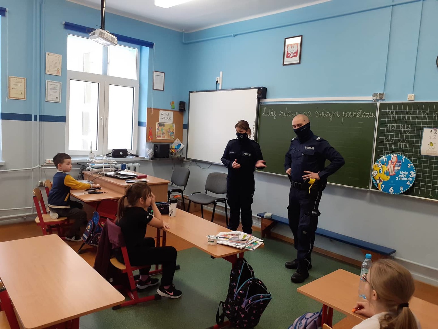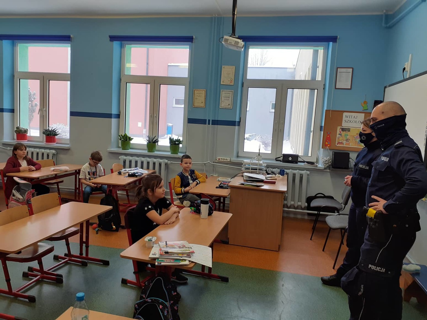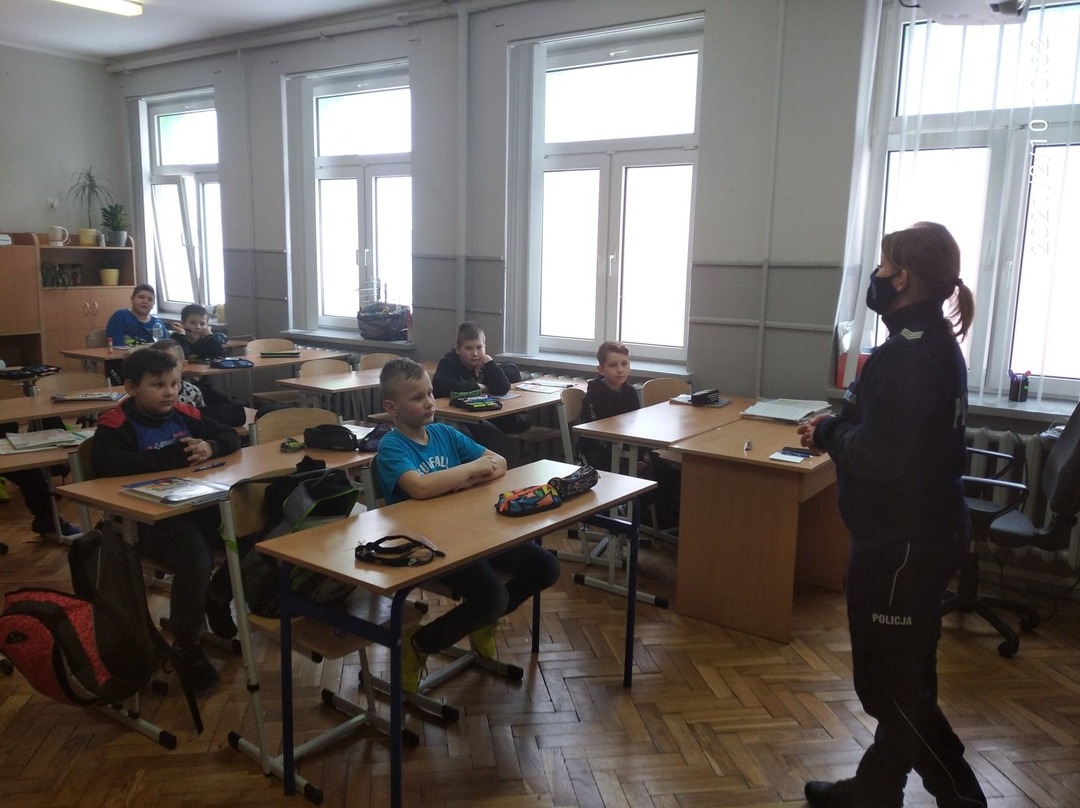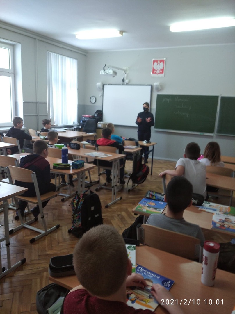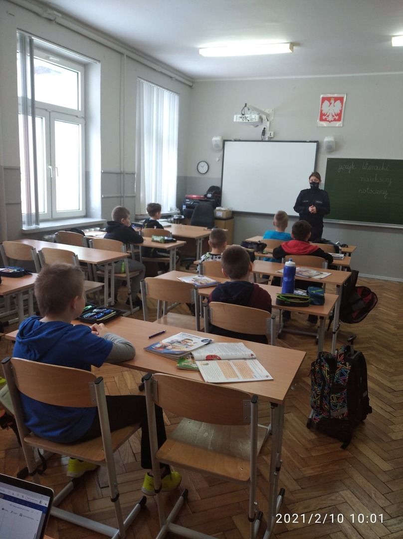 W ostatnią środę naszych uczniów z klas I – III i dzieci z oddziałów przedszkolnych odwiedzili policjanci w KPP w Zduńskiej. Sierż. sztab. Paulina Matysiak oraz sierż. sztab. Marcin Dubiak Opowiedzieli najmłodszym o niebezpieczeństwach związanych z nieroztropną zabawą na śniegu i lodzie. Okazało się że nasi uczniowie dobrze wiedzą jak należy zachować się, aby nie stwarzać zagrożenia dla siebie w czasie zimowych zabaw na śniegu. W klasach starszych dodatkowo policjanci poruszyli temat związany z bezpiecznym korzystaniem z Internetu oraz promowali właściwe wykorzystywanie zasobów sieci internetowych. Podkreślali jakie niebezpieczeństwa mogą czyhać w sieci i w jaki sposób postępować w przypadku zagrożeń.