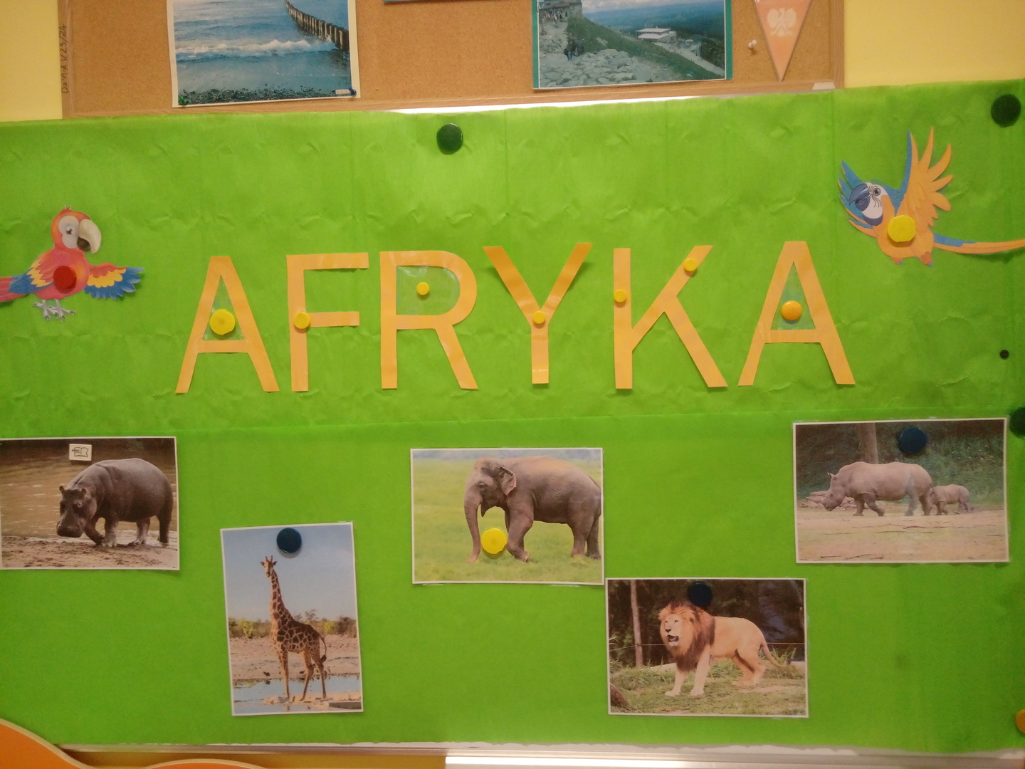 W ramach realizacji projektu edukacyjnego „Poznajemy kontynenty” dzieci z klasy „0” poznały kolejny kontynent, tym razem była to Afryka. Budowały piramidy egipskie, wyszukiwały diamentów w afrykańskich piaskach oraz wykonywały naszyjniki plemienne. Podczas tej wyprawy dowiedziały się, jak ważna jest dla ludzi woda zdatna do picia i dlaczego należy o nią dbać.
