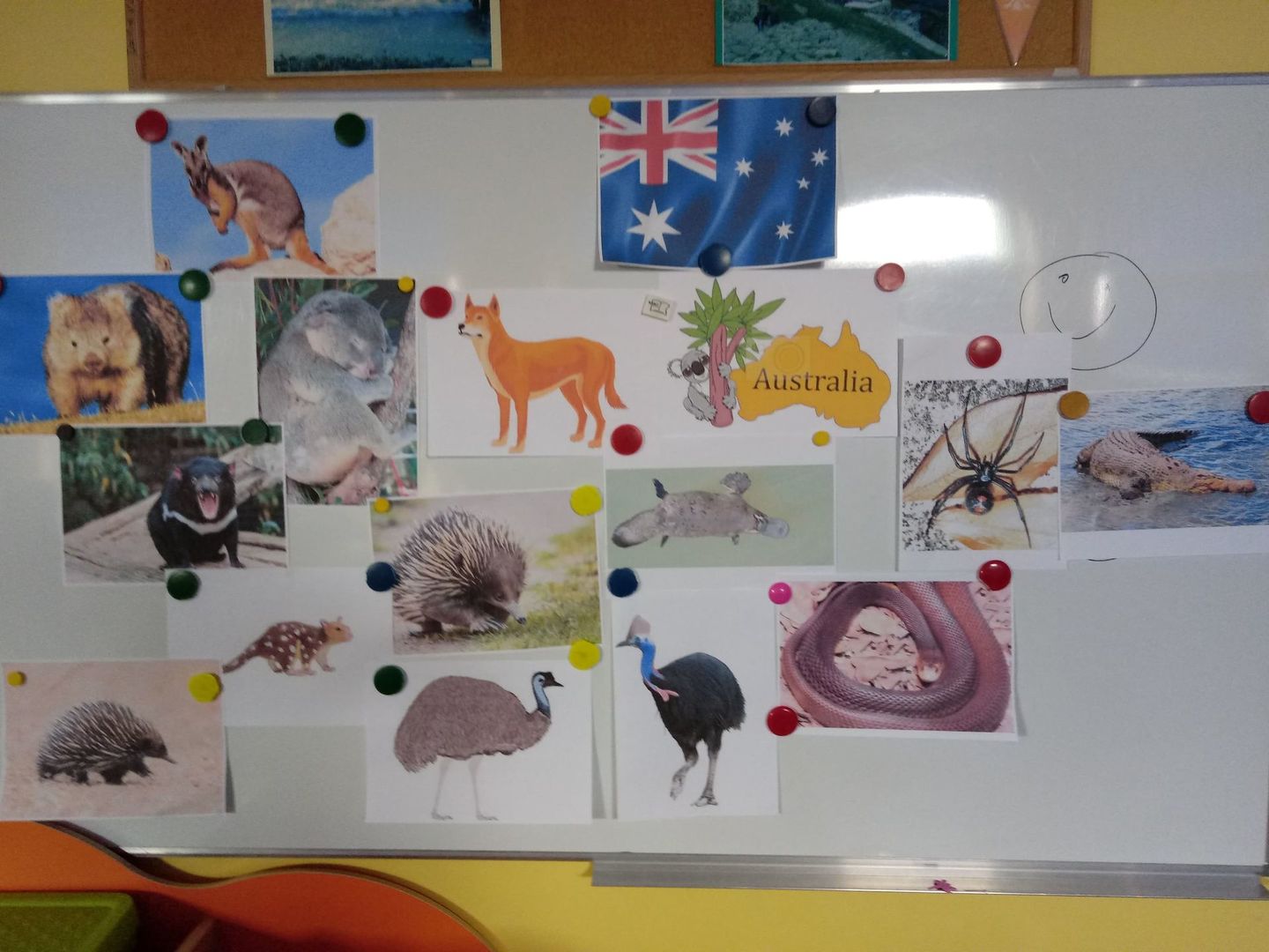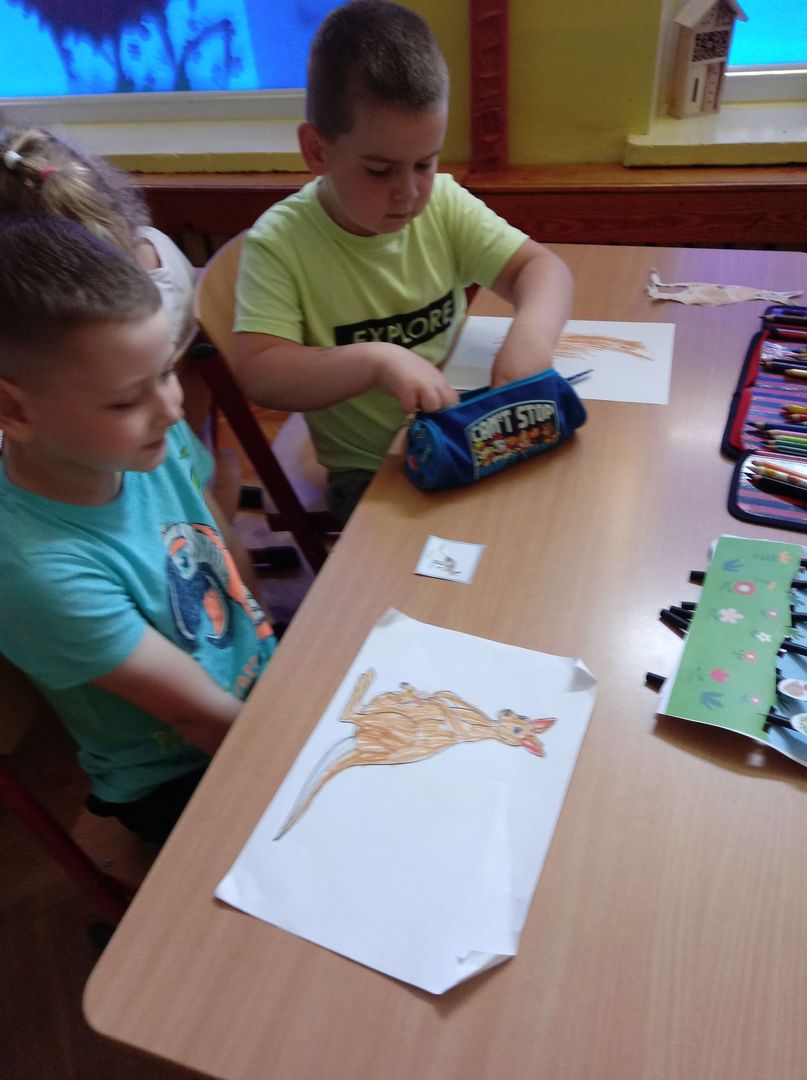 Podczas ostatniej naszej wyprawy przez kontynenty, zwiedziliśmy Australię. Ozdobiliśmy bumerangi metodą kropkowania i wykonaliśmy album ze zwierzętami, które zamieszkują ten kontynent.