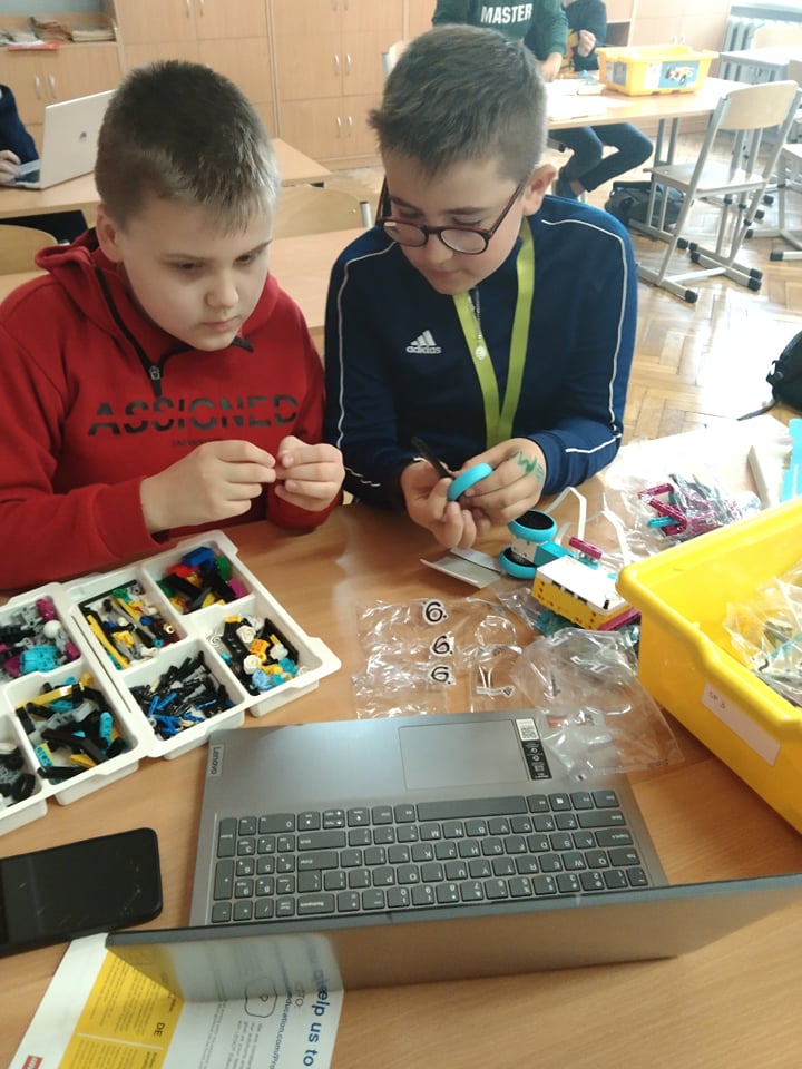 Uczniowie klasy V biorący udział w zajęciach koła ekologicznego rozpoczęli swoją przygodę z programowaniem. Korzystając z kloców LEGO STEM, zakupionych w ramach programu #LaboratoriaPrzyszłości #LaboratoriaPrzyszlosci uczniowie poprzez zabawę rozwijali swoją wiedzę i umiejętności budując ekologiczne środki transportu. Najpierw zaplanowali swoją pracę, a po wykonaniu rowerów programowali je tak, aby mogły pokonać określoną drogę.