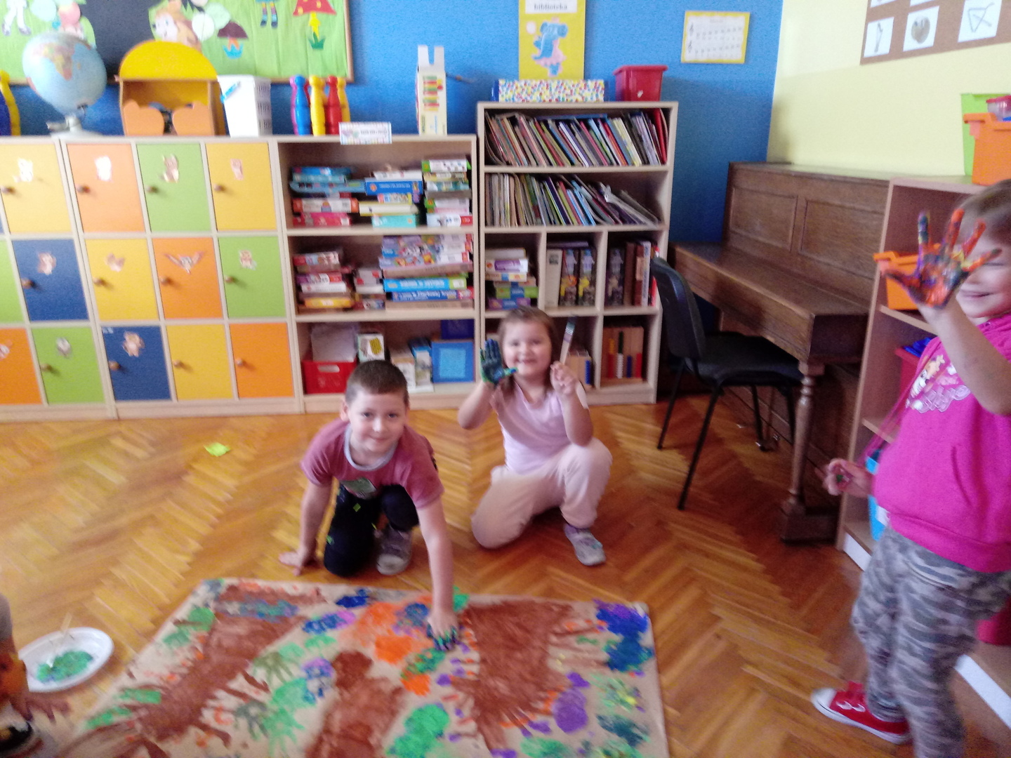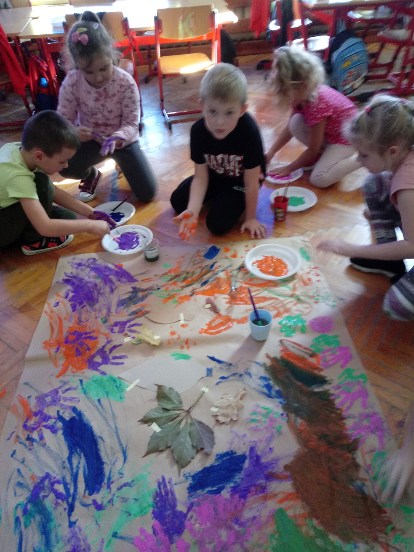 - „Paleta barw” punkt 10 z modułu I - Wykonane zostały prace plastyczne w grupach z wykorzystaniem różnych technik.
