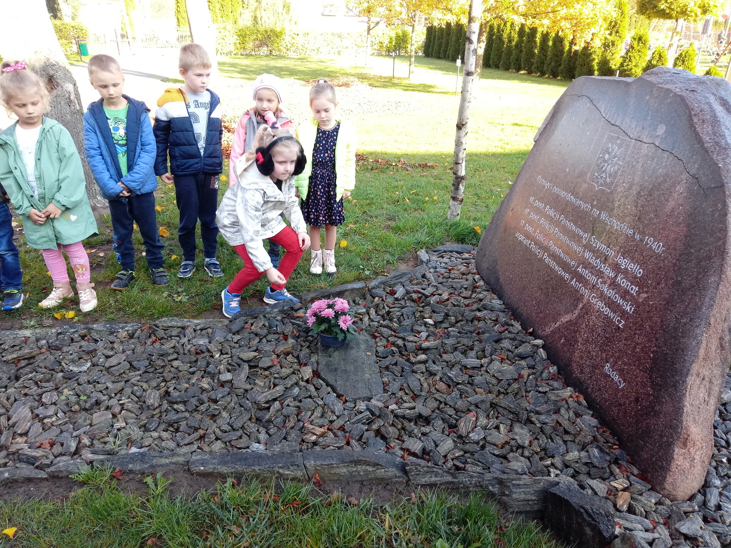 - „Dzień wspomnień i zadumy” punkt 12 z modułu II . Dzieci zapaliły znicze i złożyły kwiaty pod pomnikiem Ofiar Katynia. Przeprowadzona została rozmowa z dziećmi na temat konieczności szanowania tego typu pomników i wspomnień z nimi związanych .